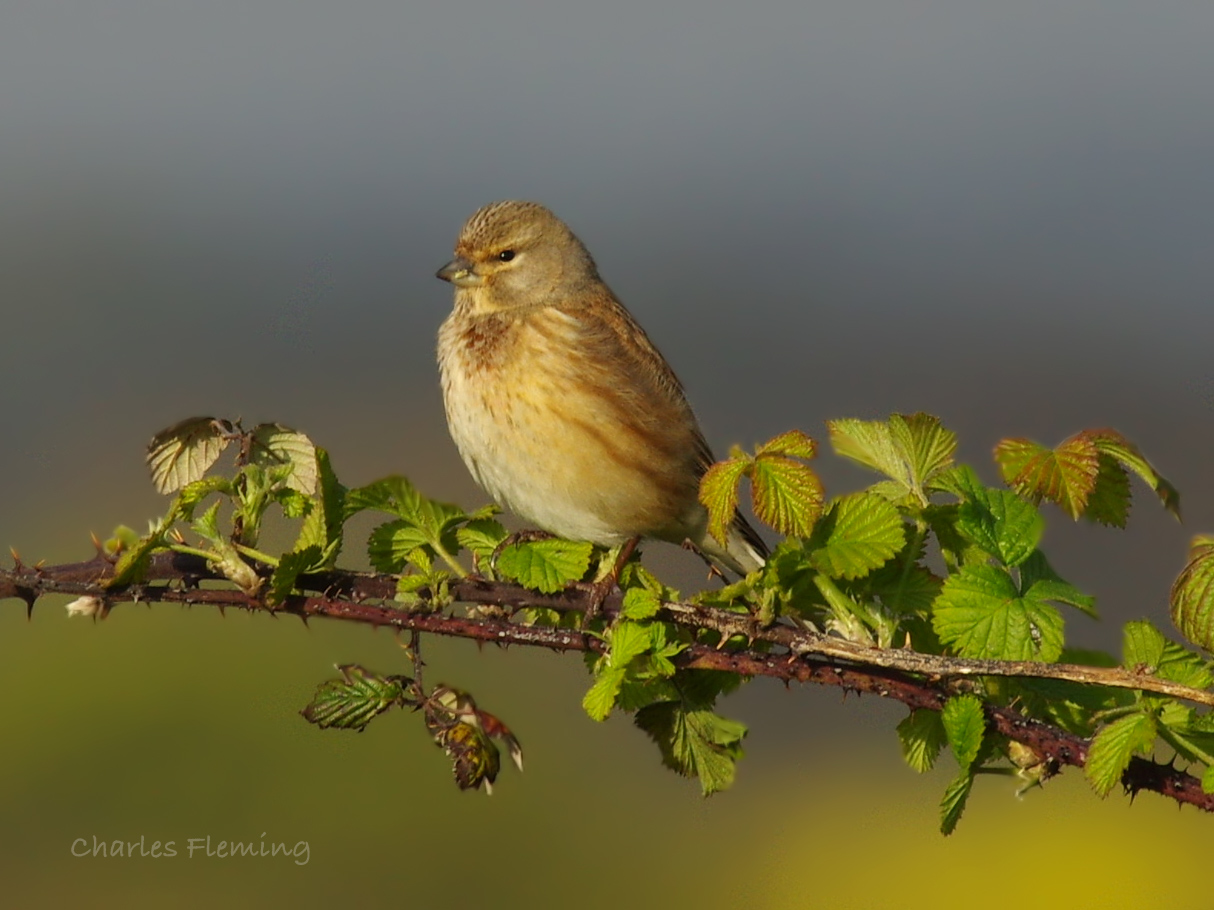 I went back quite early to Exminster Marsh this morning, in the hope of getting a better photograph of the Lesser Whitethroat that I had seen yesterday. I did see and hear this little bird again but unfortunately, today I couldn't get close enough for a photograph. It spent most of the time in the trees and bushes opposite and over the railway line. I listened to a Linnet singing from the brambles just opposite as well and in the really gorgeous early morning light, I photographed It as it sang. I used my Pentax Prime 300 lens with a new 1.4 convertor. This gives me an equivalent of 420 bout the quality is very good and there is the added bonus of being able to focus down to just a few feet, unlike my 500 prime lens which is a good lens but only focuses down to 15 feet. I just loved the early morning golden light which was about as perfect as it could be I think.