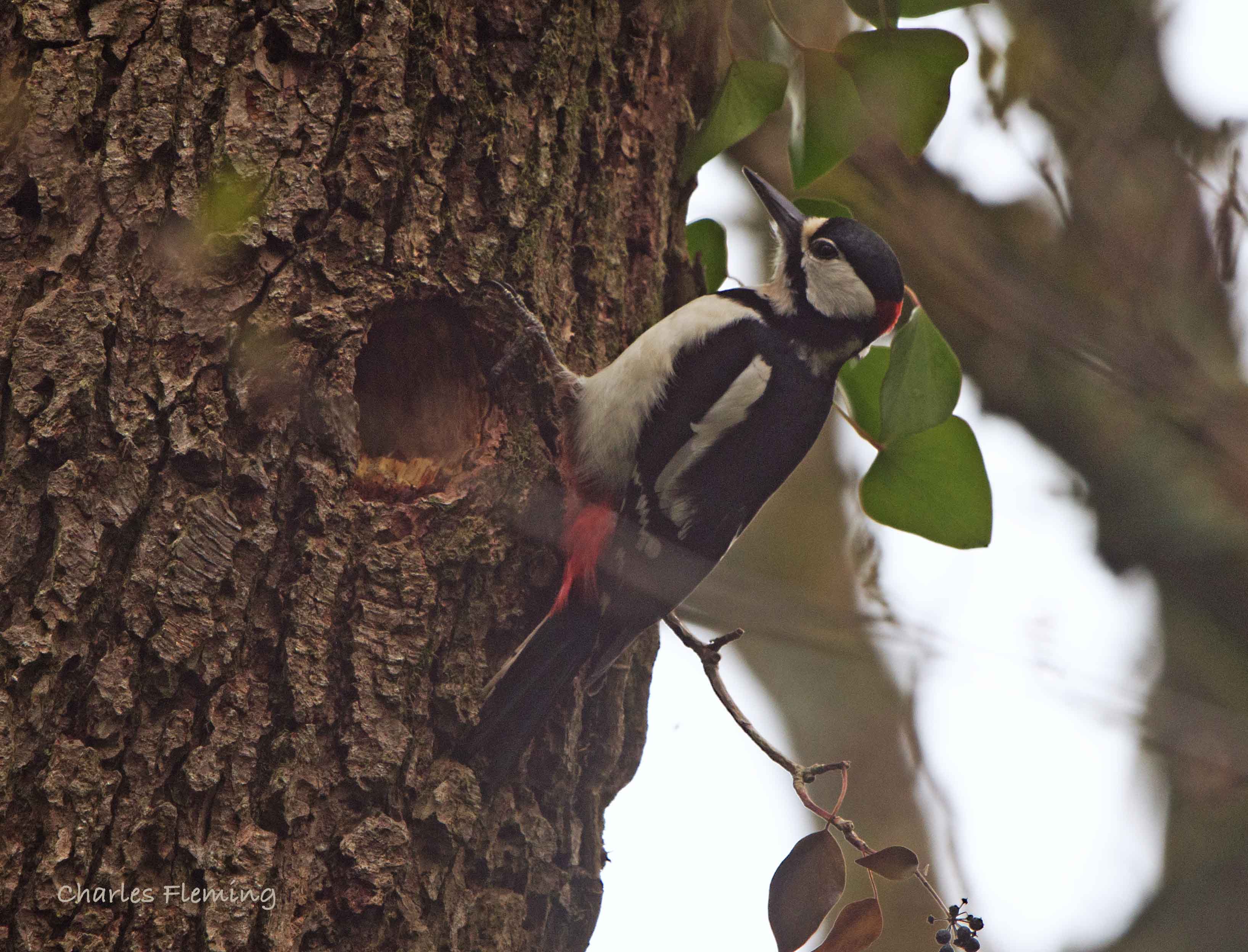I have had a very mixed week this week, some amazing things and a few real disappointments so to get to watch Great spotted Woodpecker at it's nest has been a real treat. I have to confess that this has been something that I have been trying to achieve for the last few years so the other day when I saw a woodpecker disappearing in to it's nest hole, I was thrilled. I positioned a hide overlooking the nest and then retreated for a few days to leave the birds in peace. When I went back today I trained the camera on to the hole, and with the camera in live view, I sat back and waited. After only a short while I heard the distinctive call of a woodpecker and sat real still, watching the LCD screen on the camera intently. Suddenly there was the bird on the bark of the tree, creeping up to the hole. Unfortunately there is a fee leaves and twigs closer to the camera than the tree and this has caused a bit of ghosting on the image but I am sure once I am there with the sun shining, I am going to record some action. This is the male bird by the way. Males have a red patch on the nape as you cane see. Female's have no red on the head but newly fledged Woodpeckers have red on the head. I have seen some pretty spectacular photos of woodpeckers at the nest over the years and I know that I am going to be able to add some of my own as the season continues.