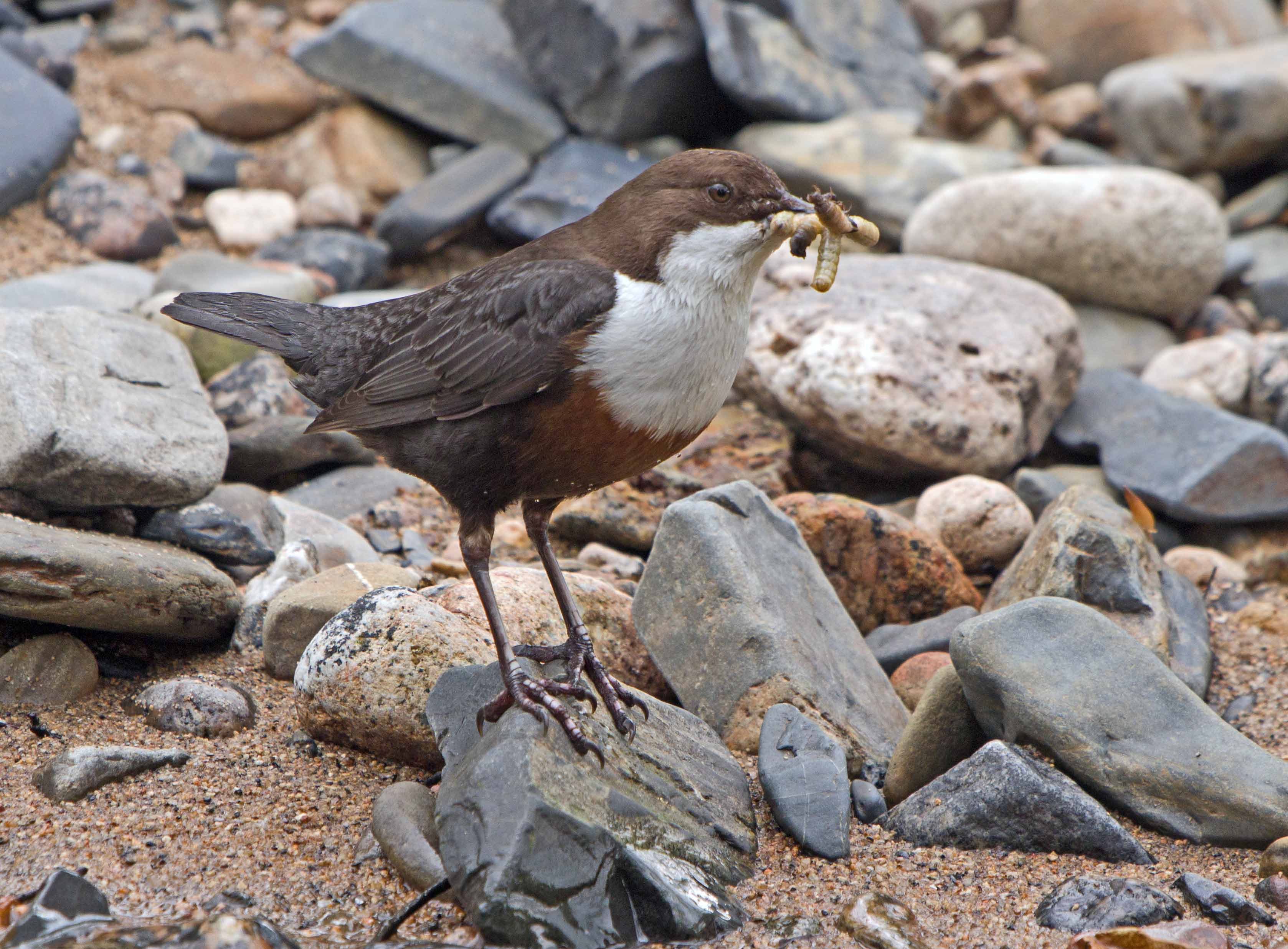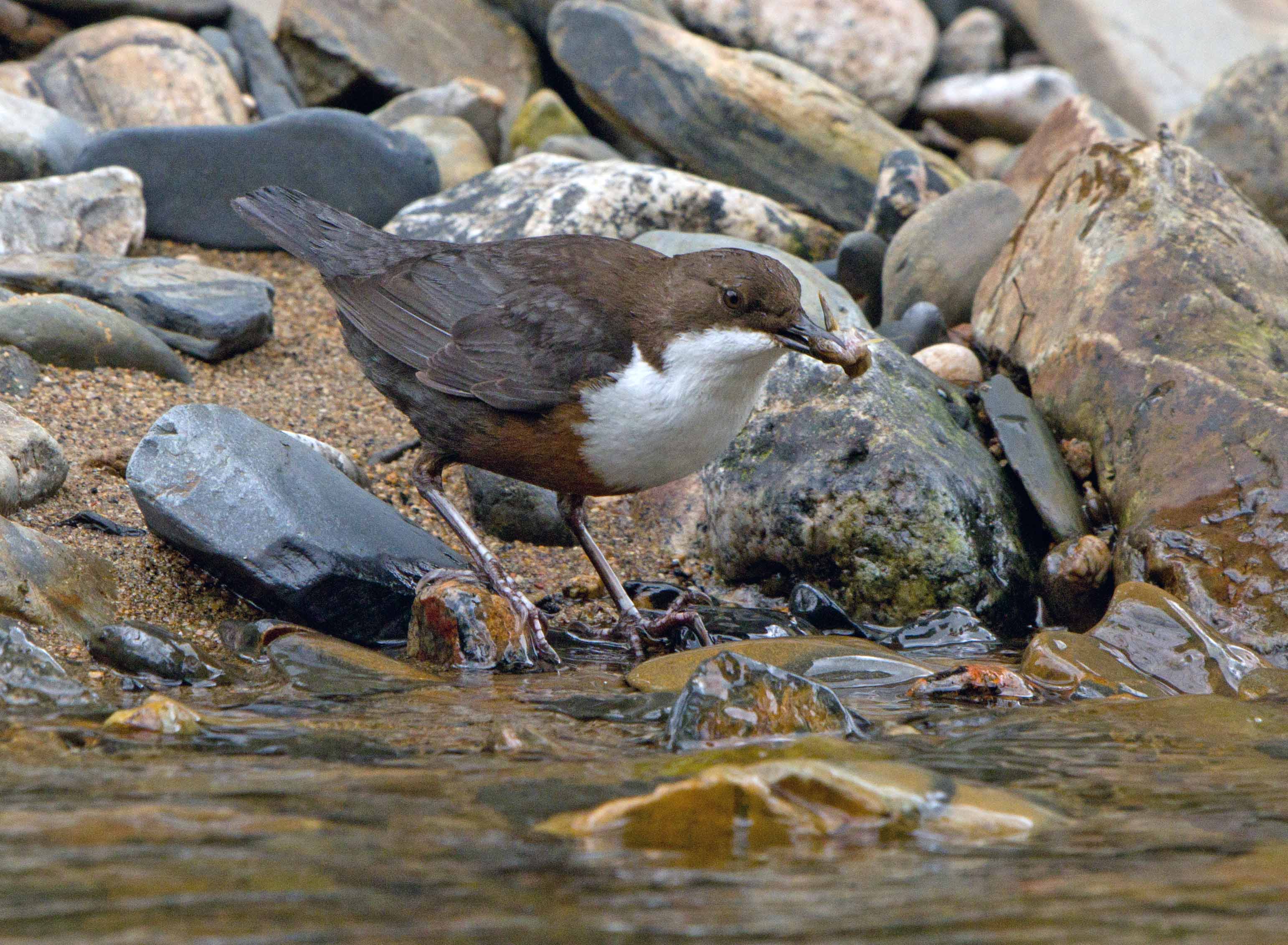 Having checked my calendar, I realised that the Dipper nest that I had found last month should contain young birds about to fledge. When I got there it was obvious that everything had progressed really well and the young dippers were still in the nest and being fed by both parents who were visiting the nest every few minutes with beaks full of food. Items included small fish, and various invertebrates.
