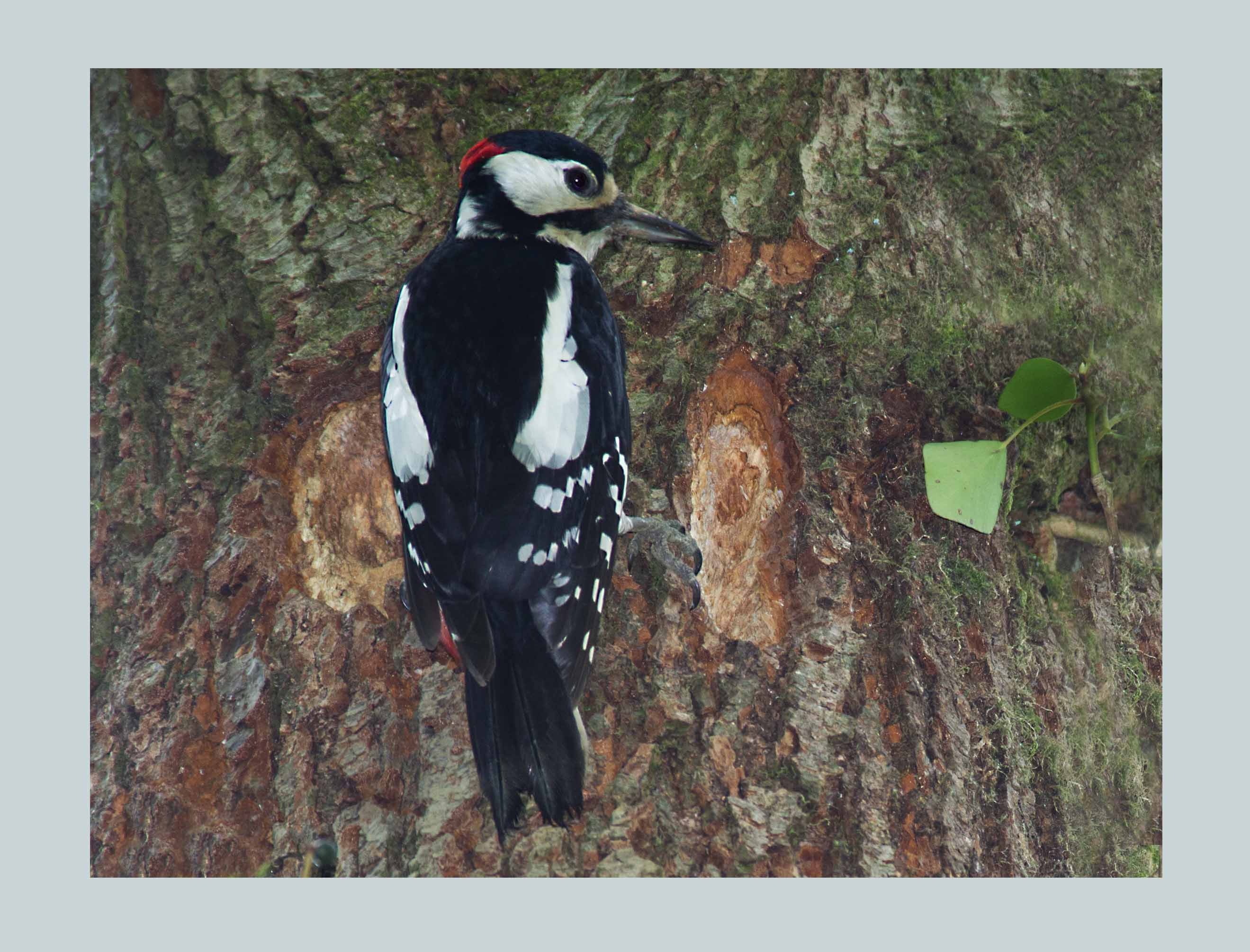 You can tell the male from the female by the red patch on the nape which is absent in the female but weirdly, youngsters have a red forehead which is absent in adults. Iterestingly, therefore, newly fledged Great-spotted Woodpeckers are more colourful than their parents. I can't think of any other specie where this is the case. Just to summarise, you will see three differently marked Great-spotted Woodpeckers. Red on the nape, a male, no red on the nape, a female and red on the front of the head is a newly fledged youngster… either male or female.