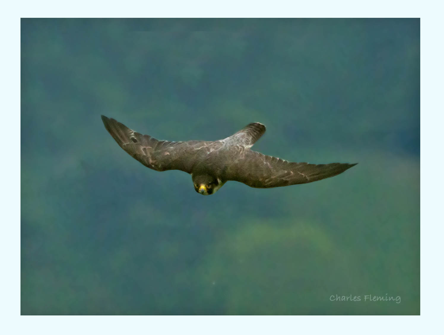 Peregrine Falcons are extremely hard to photograph in flight so you can imagine that I was pleased to get this shot yesterday. This is a female….the “Falcon”…. males are called “Tiercels”….. they are hard to seperate in my opinion but at my Schedule 1. license site I had been watching the pair for a while and I knew which was which. Males are smaller than females but when they are not together I dont’ find them easy to separate. In the evening I met up with Dave Stone who has a good Blog look here. There are some nice pictures as well. I took him to where I had seen Tawny Owls the evening before, they are not all that easy to see let alone photograph and I knew that Dave hadnt even seen one this year. When we got to the lane, I have to confess that I was hopefu and quietly confident. But then we started to hear a bird, we knew immediately that it was close by. There was a right commotion coming from a nearby tree, 2 Jays were going mad, obviously unhappy about the owl which was also quietly calling in a massive old oak tree. It was hard to locate even though I was certain it was there. Then it flew and landed in another tree, it was hidden, or so it thought but we could see it through the oak leaves and tucked tight to the trunk as it peered at us. Dave got his photos and he was elated. (See them on his blog.)