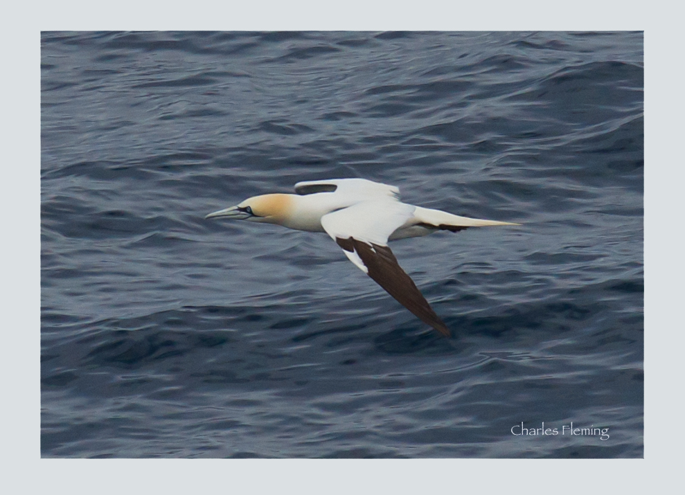 I really like shots of seabirds in their environment so when I knew that I may have the chance to take photographs whilst at sea yesterday, I took my camera along and spent an hour on the upper deck as we left France from Roscoff on the way back to Plymouth. I was really hoping to see and photograph Skua sp. or/and Shearwaters but It was quiet and only the occasional Northern Gannet put in an appearance. I ran out of patience after an hour and the draw of joining my friends in the lounge bar beneath proved to be more of an attraction I am sorry to confess.