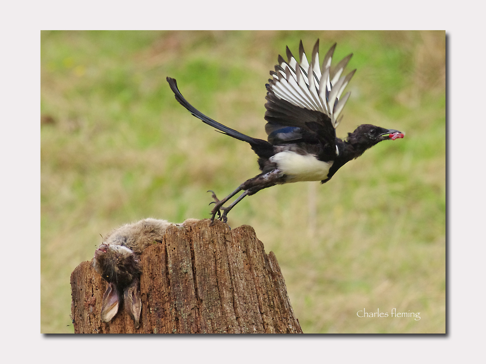 After quite a wait, 2 magpies came down to the rabbit and gave some great photo opportunities. It's not often I get chance to watch and photograph magpies up close, they always keep their distance because thy are so clever and also persecuted by just about everyone. Even people who only have a passing interest in wildlife hate them. They need to have their wits about them or they wouldn't survive, hence their caution.