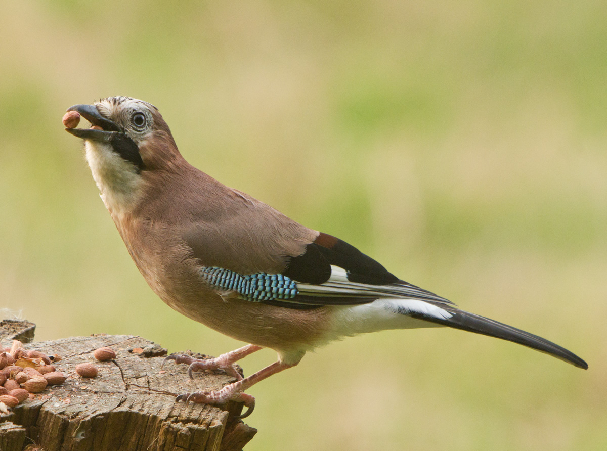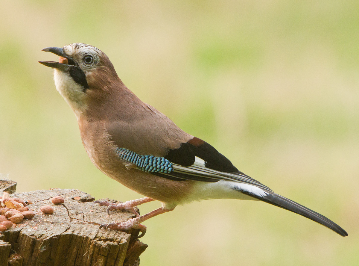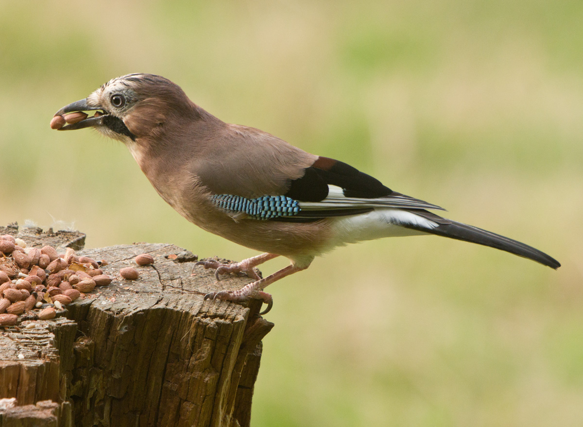 Heres the Buzzard imitating Jay that came in to feed on the free peanuts this evening just before dusk. Can you see how the crop of the bird is full of peanuts, I have counted as many as 20. I also had a visit from the Buzzard, the same one that I had photographed the other day but it was very wary this evening and as soon as it heard the shutter on the camera it left immediately. This is obviously not ideal and after waiting for sometimes 2 or 3 hours the last thing that you want to do is disturb the bird. The photo was taken with a high ISO hence the grainy nature of the image.