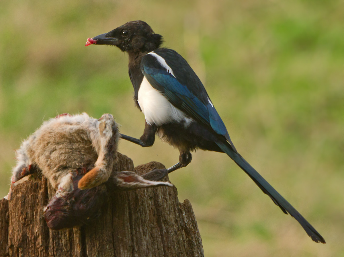 Again, one of the Magpies came to feed on the carcass which was interesting to watch just like yesterday. It suddenly departed in the opposite direction from which it had arrived which I thought was a bit odd and then the Buzzard suddenly arrived so I guess that with a bird of prey around the magpie beat a hasty retreat.