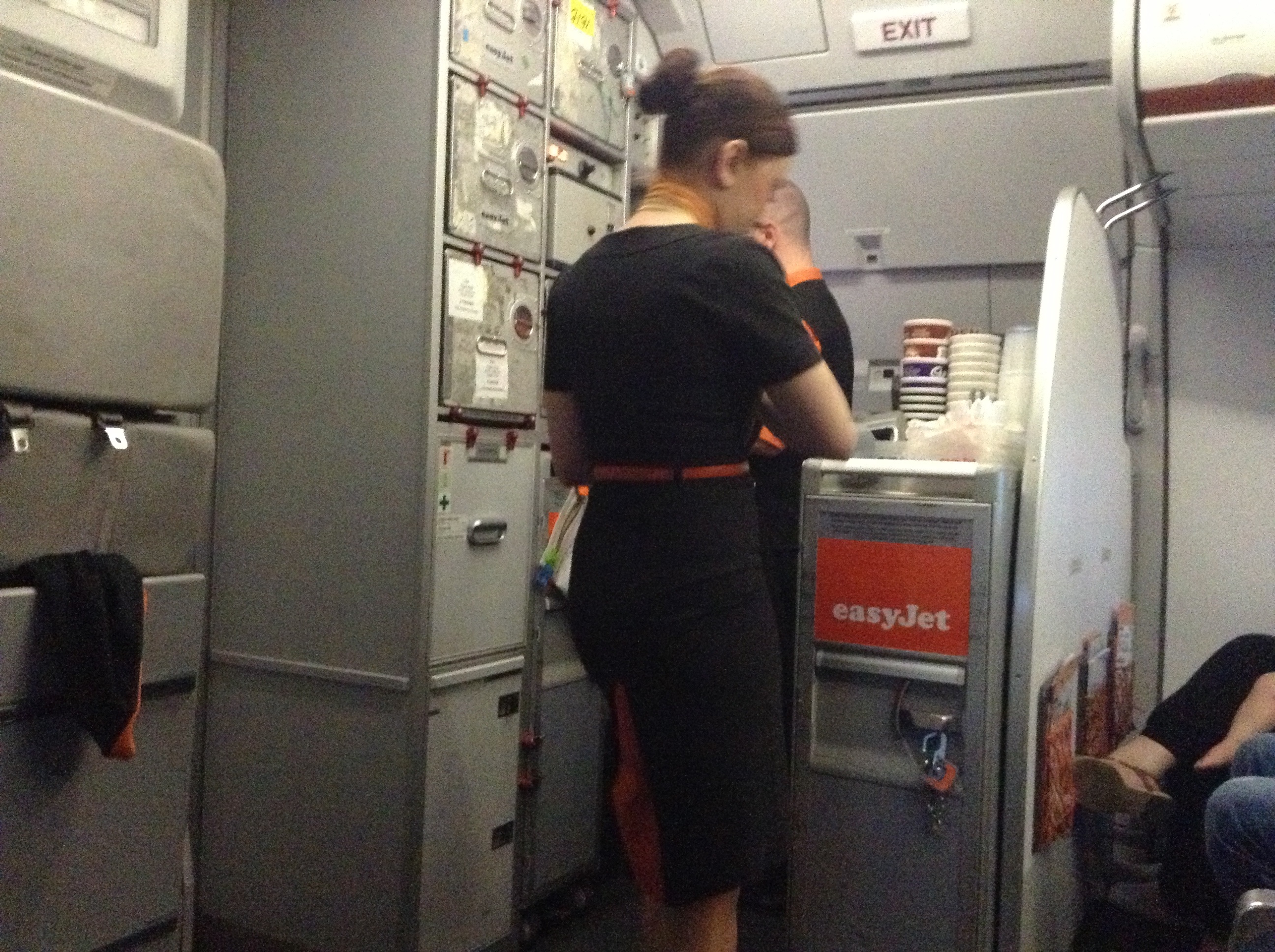So, we're on the plane, its Easy Jet and the cabin crew bloke is called Vic, if it was BA I am sure he would be Rupert or Jeremy. . I upgraded to the extra legroom seat and I am in seat 1A, brilliant, Easy Jet' equivalent of First Class. Not only no seat in front of me but nobody next to me either, I feel like a VIP and well worth the £12. So far, nothing to complain about yet today! Above the clouds and the sky is blue, nothing like it!
