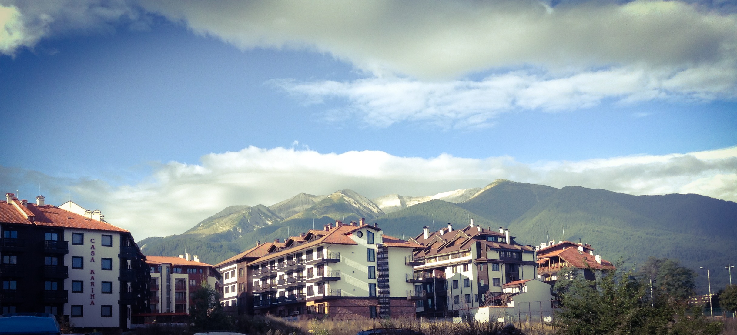 A light dusting of snow covers the Pirin Mountains (2914 feet) this morning after ann overnight fall, a view from my balcony.