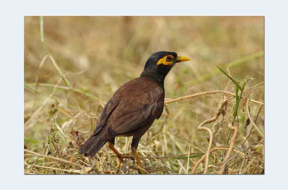 When I am away I often overlook he common birds thinking that I will be bound to get a good shot before I leave and then forget all about it. I am determined not to do that this trip so I have been photographing the Common Mynahs every time I have seen one. Just by the house there is a family group with fledged but not yet independent youngsters. This is the male I believe. He is an ugly bird, but charmingly intelligent as well.