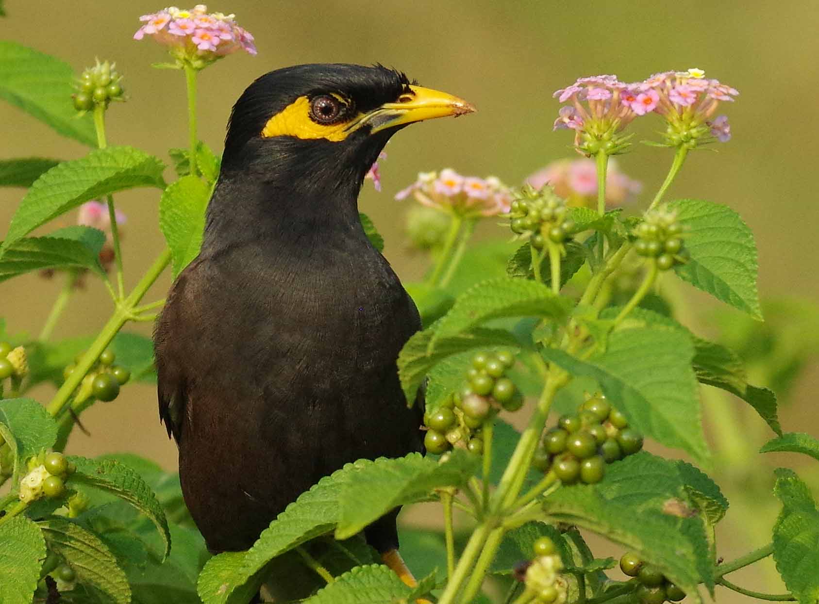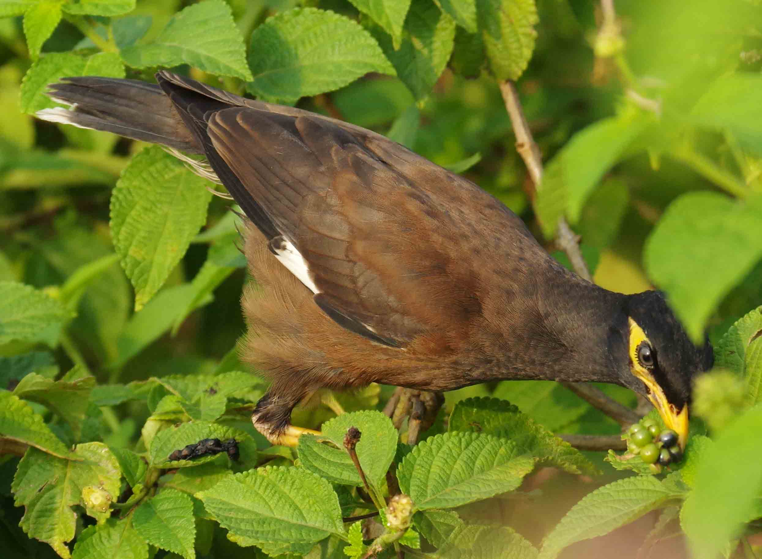 Heres the Mynas enjoying the berries of the Lantana bush and looking very picturesque.