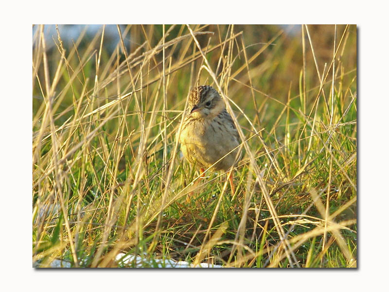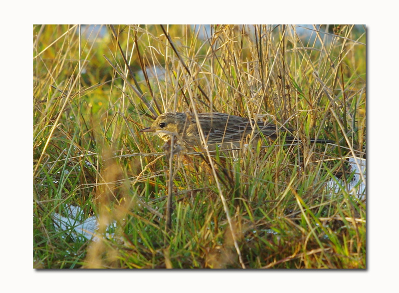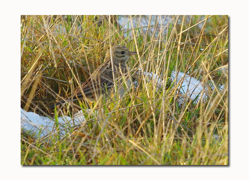 I was up in West Yorkshire for a week over the New Year and staying not far from Wakefield where Yorkshire’s first Blyth’s Pipit has been for most of December (and still there as I write). The Blyths Pipit is closely related to the Meadow Pipit in who’s company it was moving and feeding with. Apart from the call there are several factors which can visually separate this species from our familiar pipits. It is slightly larger and has a different pattern of marking on the breast, in fact when I studied my photos I could clearly see that Blyth’s are devoid of any streaks on the belly and flanks whereas Meadow, Tree, Water and Rock Pipits (regularly seen UK pipits) have all got streaking and “ticking” on the flanks as well as the breast. I cannot describe myself at all as an expert on this species but I have seen perhaps thousands of Meadow Pipits, and loads of Rock and Tree Pipit but I confess that had I stumbled upon this bird I would have probably overlooked it as a Meadow Pipit. In total there are only 20 reports of this species in the UK but I suspect that others have been overlooked, perhaps regularly. It is a bird that breeds in Mongolia and overwinters in Sri Lanka! I was there in November and I saw a pipit which departed before I could ID it and Blyth’s was one of the species that I suspected it to be, so who knows….it may have been my second Blyth’s Pipit of the year. It wasn’t an easy species to photograph because of the habitat and the grasses that mostly obscured a good view. Perhaps this is the rarest bird that I have photographed in the UK in fact it probably is so I hope you will excuse a bit of grass!