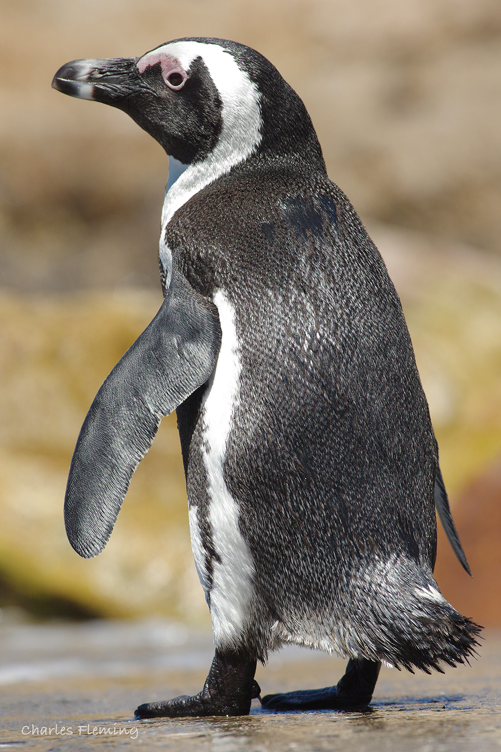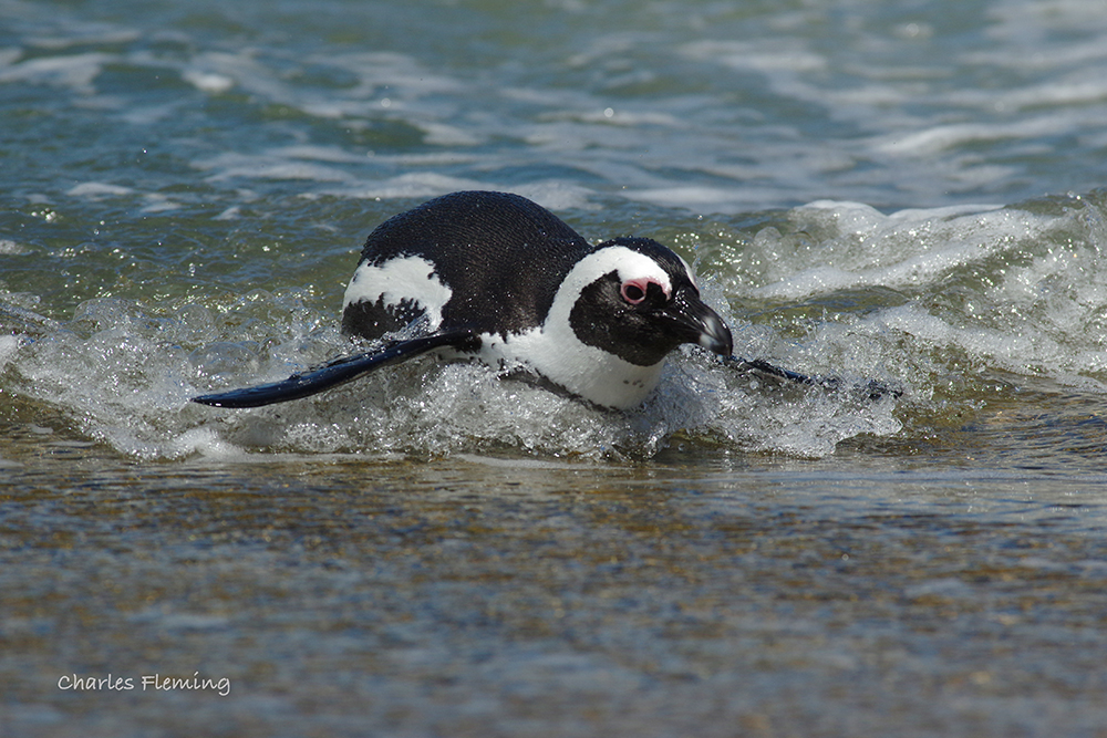 We have had a busy, busy last few days and I have found it hard to find time to "blog" as normal. Take yesterday for example, I went looking for an exotic bird called a Rockjumper but I wasn't successful, I will go back another day. However, at Betty's Bay, the other well known African Penguin Colony I spent a very entertaining hour photographing penguins as they came in an out of the water. It's hard to imagine that the penguins here are wild because they are so unconcerned about people. The ones that I watched and photographed yesterday were standing on a jetty and coming and going even though I sat near to them. They were not in the least bit concerned about me , or the other people, coming and going in a constant stream. As a wildlife lover this is quite a thrilling thing to do and it must be one of the best wildlife experiences you could possibly have. The African Penguins here are truly wild and chose to be there in spite of the presence of people. My instinct would be to give them more separation from the public but, like I said, they chose where to exit the water and it does not matter if people happen to be standing there, they still come out of the water and then carry on preening and resting in a very relaxed manner. The photographic opportunities are incredible. Take the picture above which is not even cropped or specially framed and I could just about get this posing female in the frame. The birds yesterday were in brilliant and healthy condition and looked even plump.