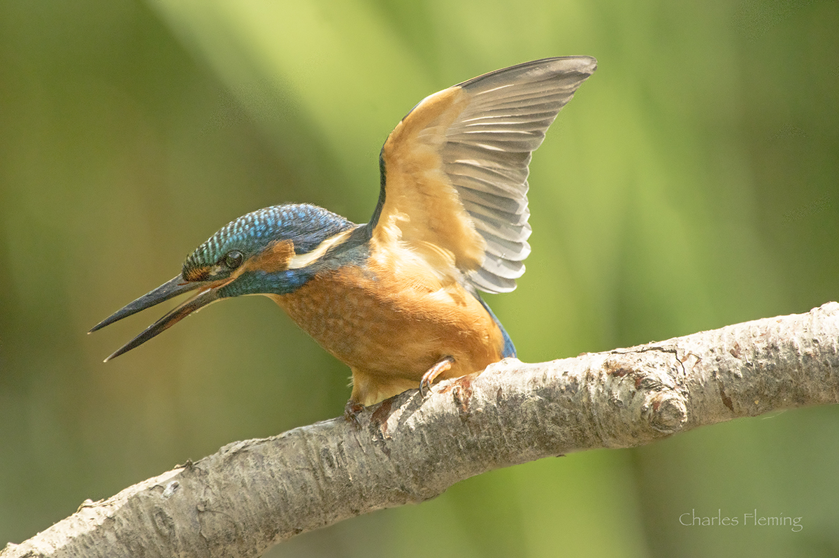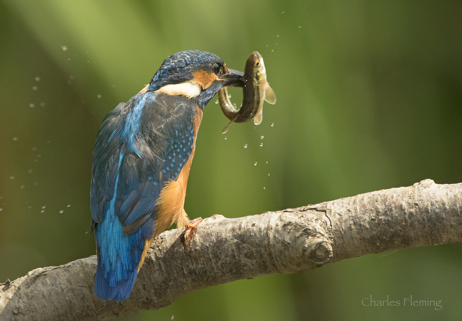Within 10 minutes it was back and I was excited to see it and have the opportunity to take photographs. It is a young newly fledged bird, a male I think. It has smokey black feet and dark smudges on the breast. A house sparrow perched close to it and this was enough to illicit an aggressive response from the nervous little bird. After a few seconds it dived in to the water and emerged with a massive River Minnow making this a very special 30 minutes or so.