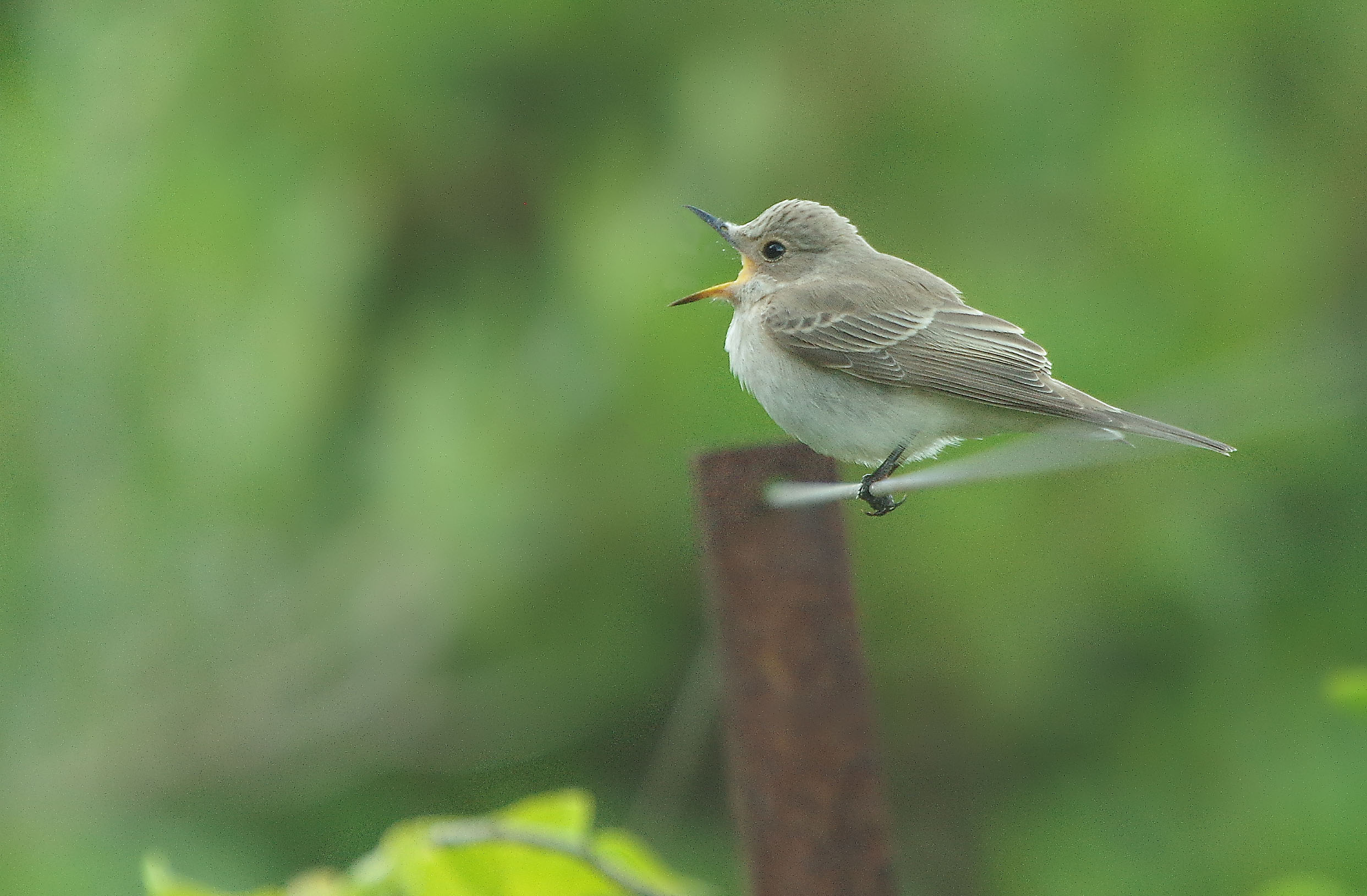 Spotted Flycatcher. A common bird on Minorca, this is a juvenile which was feeding on the edge of a fruit orchard.