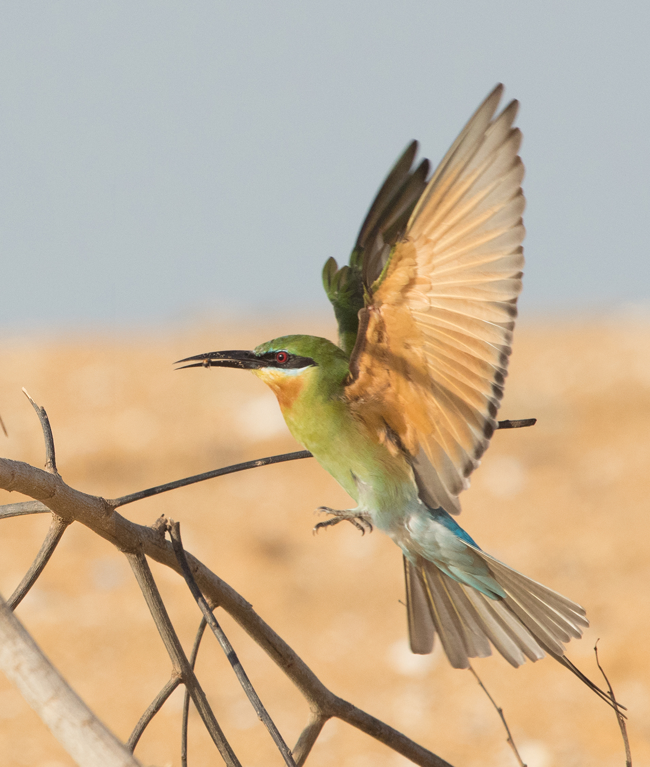 I had placed this dead bush on the sand in the hope that bee eaters would use it and they did…. not only bee eaters but kingfishers too.