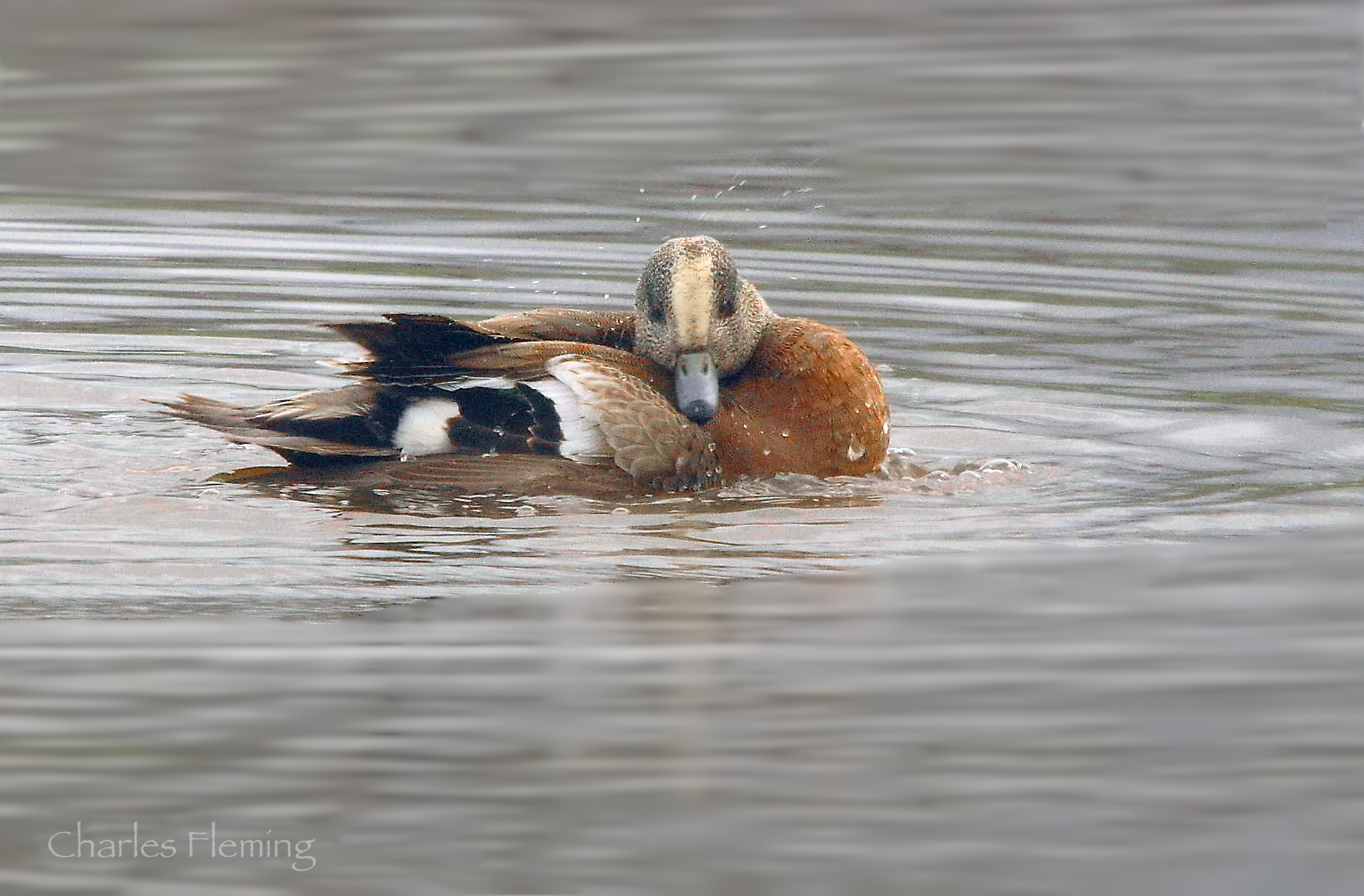 I always notice that when I post pictures of common British birds, readers of the Blog from the USA find them very interesting because they are unfamiliar. By the same token, British readers are very interested in species from the USA and today I photographed an American Wigeon that has been on the local marsh amongst the European Widgeon. I was very lucky because when I went to see if I could get a photograph this morning it was showing as close to the road as had been. It was a good opportunity.
