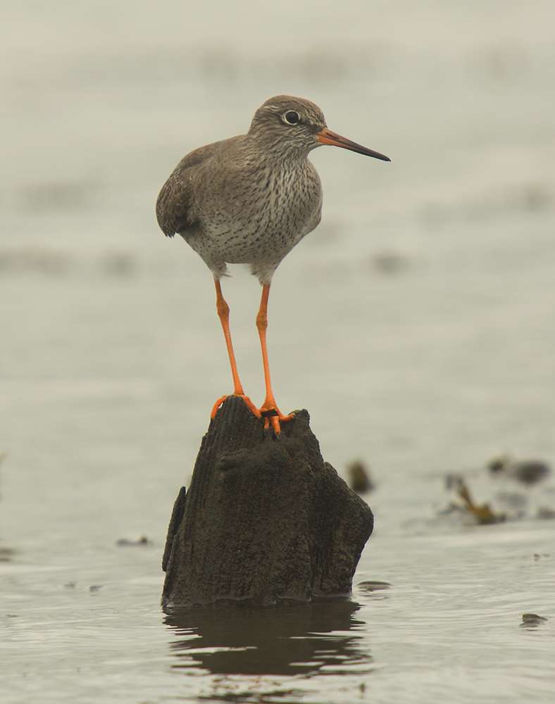 After a while two Redshank and another Grey Plover came in which was both exciting and rewarding but with no sun and very bright reflections from the water the opportunities for a great photo were very limited.