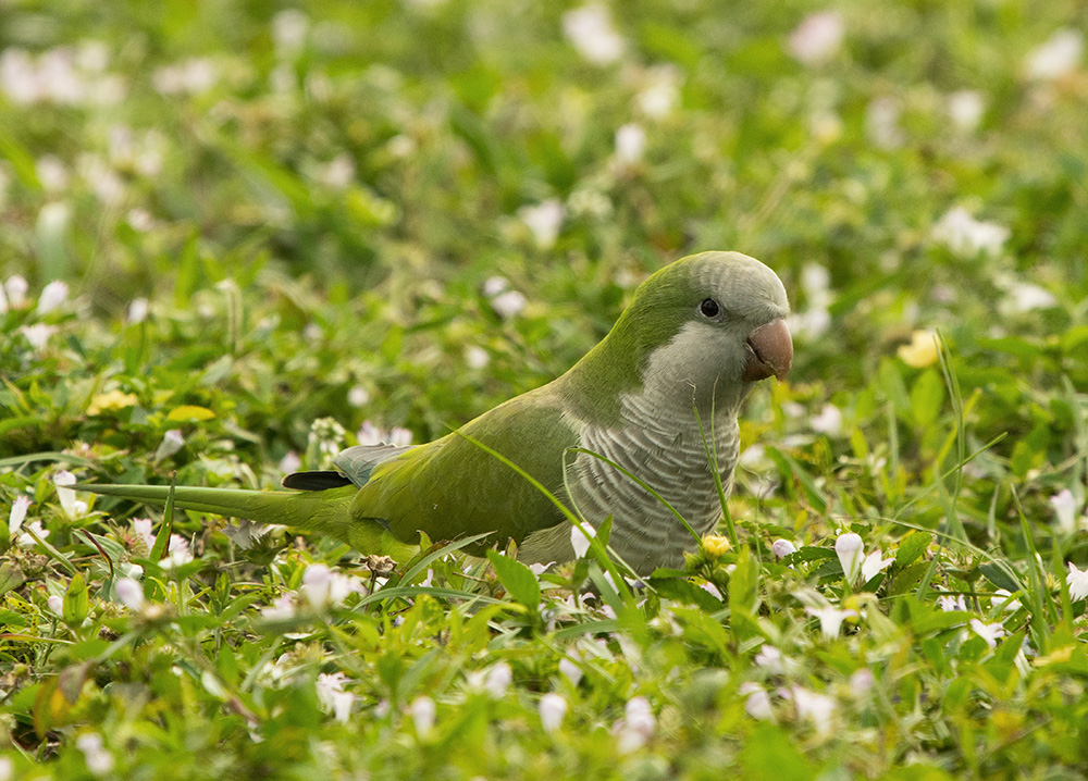 Do you like Parrots? I certainly do and its great to see wild albeit feral populations of parrots feeding and breeding naturally. In Florida there are numerous feral populations and one of the most common is the nest building Monk Parakeet aka Quaker Parakeet. They build nests rather than use nest holes and are communal breeders and therefore always seen in small community flocks. I watched some feeding on seeds on a playing field yesterday afternoon and really enjoyed how beautiful they were even though they are not a particular favourite of the local Floridians as they can be messy and very noisy.