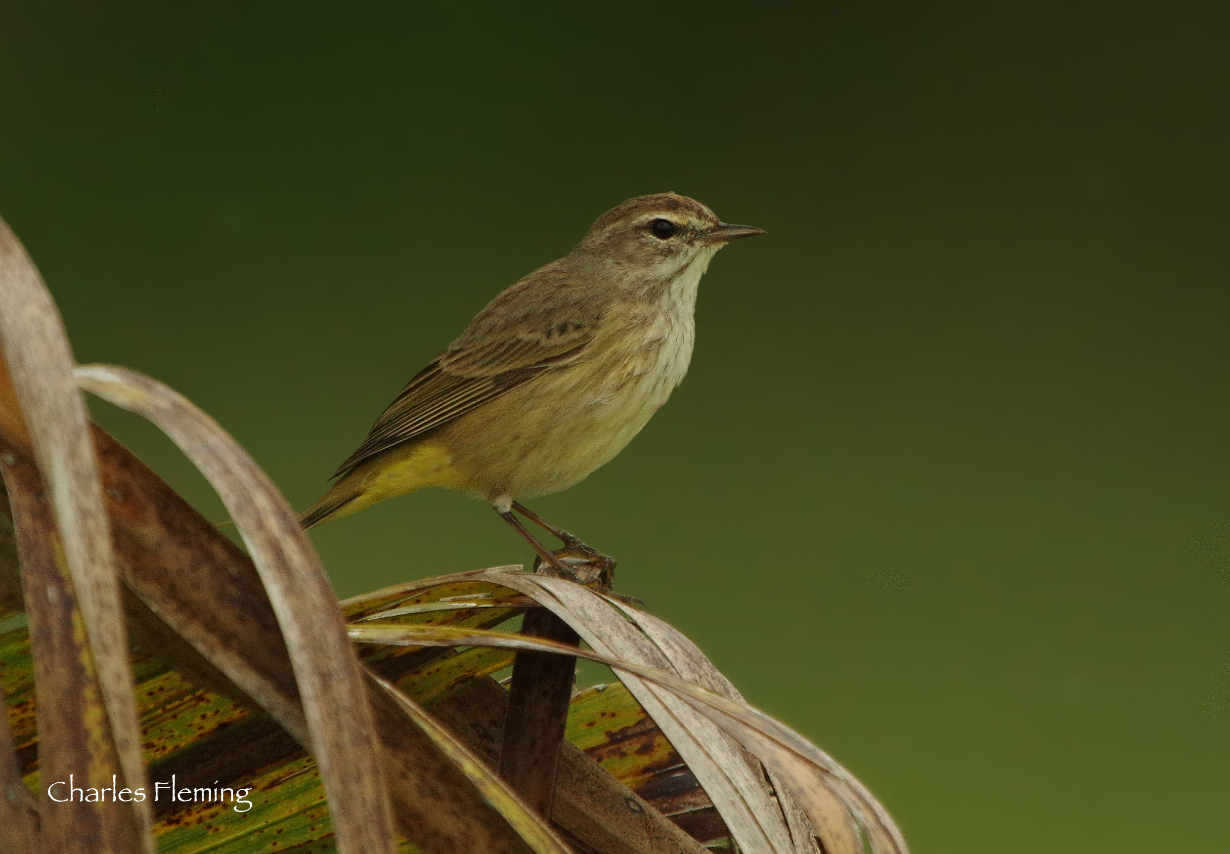 Palm Warbler.  There are two races of this species here in the winter, one Eastern and one Western. The Western race has a much more chestnut coloured head. Always common and can be found flitting from tree to tree and quite often feeding on the ground.