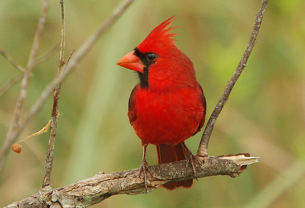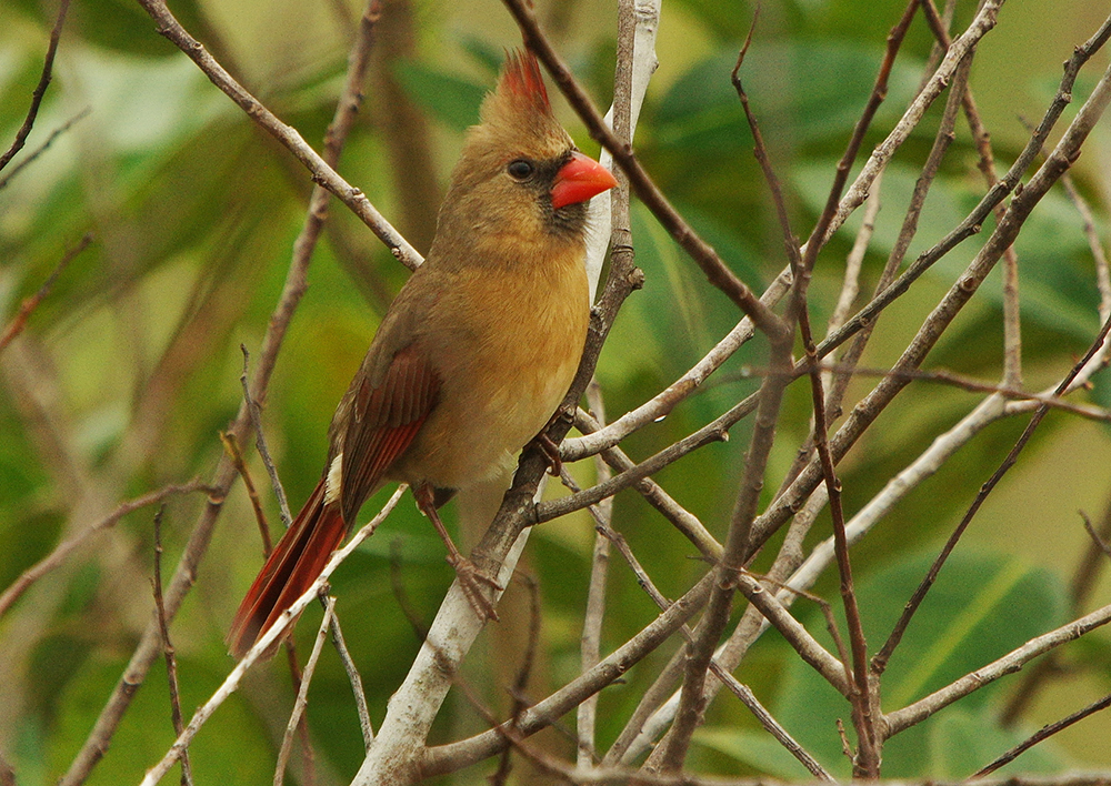 Northern Cardinal male.  This is such a distinctive, beautiful and striking bird that you would think it was impossible to miss but it always amazes that they can disappear in to the undergrowth quite easily and then be hard to see.