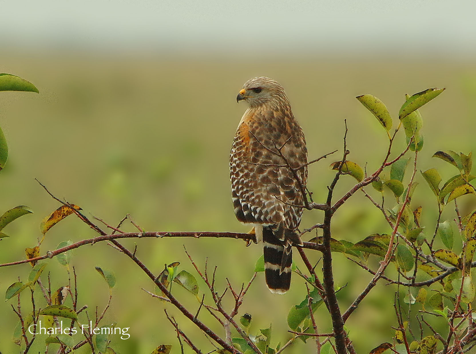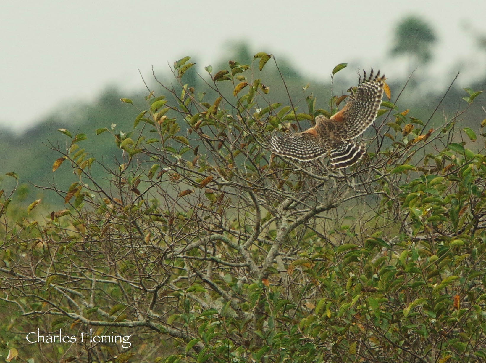 Finally as I made my way back to the parking area a bird of prey glided past me silently.  I watched it all the way on to a perch in a low bush and managed some great photos before it flew off down the track to perch again about 30 yards away.  This gave me the chance to see its lovely striped tail.  I checked my Sibley's electronic Field Guide and immediately I was able to name it as a Red-shouldered Hawk a member of the buteo family of 28 species in the Buzzard family of birds of prey.