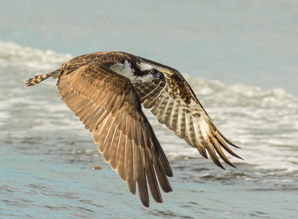 The weather continues to be very mixed with some quite severe showers and weather fronts causing widespread disruption when it occurs.  For example yesterday morning was about the worst weather I have been in period, with a front passing through that wrecked mobile homes and uprooting trees in the state.  Fortunately in our location, it came and went in a matter of minutes and things were soon back to normal but not before a massive amount of water was dumped on the roads. So it goes without saying that yesterday was not a good day for birds or photography.  I was pleased when I woke today to see the sun rising and only a few scattered clouds, however it was very cold by Florida standards with the thermometer only touching 53f.  I knew it was going to be good morning to photograph Ospreys though so I went down to the National Park to see if any were fishing there off the beach.  I sat quietly in the spot where I had seen one the other day  and then, after 20 minutes and out of nowhere, an Osprey was with me and it dived in to the bay but didn't catch anything.