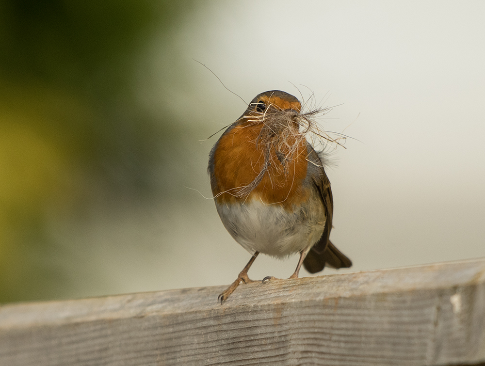 Here's the nest box mentioned in the previous post. As you can see, it seems a perfect and safe nesting site which has to be accessed through, what to a bird, must be a maze with 3 elements to negotiate – a door, a window, a sharp turn and then there's the box. The nest is progressing nicely. It's been made with moss and other items from the garden and is lined with fibres and animal hair. Quite where the bird is getting the animal hair from is a mystery. The male again seemed to be taking no part in nest building. Its worth noting that the birds seem to spend quite long periods away from the site.