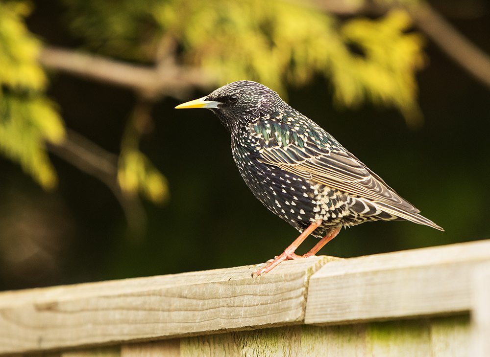The Common European Starling – Sterns vulgaris is a stunningly beautiful species that often presents it's self as a black bird because in silhouette, thats just how it appears but close up, they are a combination of iridescent blues and greens with spangles and a nice bright yellow beak. At this time of the year they look their best.