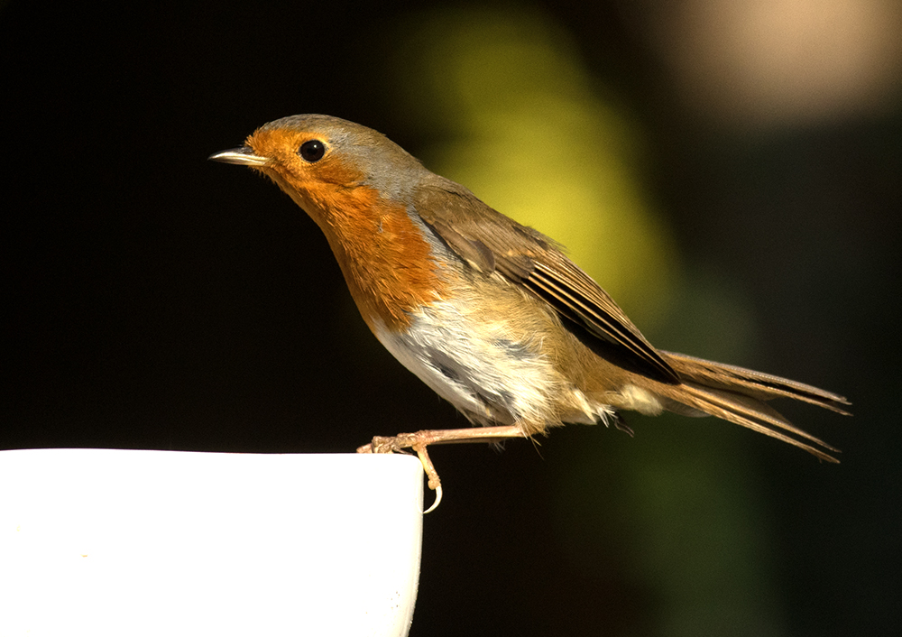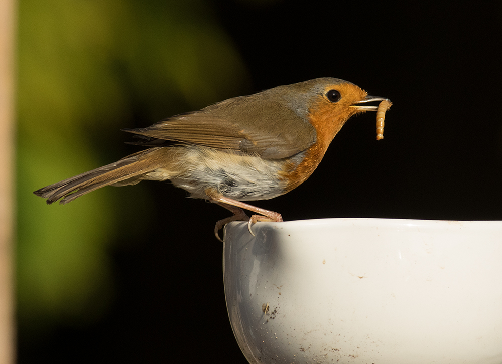 I said yesterday that I was certain to be able to post pictures of the garden Robins today now that they are coming in to feed their newly hatched chicks. With both birds away from the nest and sat on the fence I was able to quickly check on the chicks who are nice and healthy with yellow gapes and fluffy sparse down. The parents both came in to the dish of mealworms but interestingly only fed on them and then went off to find some food to feed the youngsters. The male returned with some nice green caterpillars and then disappeared in to the shed with them. So far so good, it's all progressing as it should. Both adults are very, very active and working hard to provide food. It seems that they return to the nest every 15 minutes or so but the female continues to brood the chicks at this stage and as far as I know, I haven't seen her bringing food yet. Females do all of the incubation and it looks like the male is the provider. It is going to be interesting to see if the female starts to bring food when the chicks are slightly older.