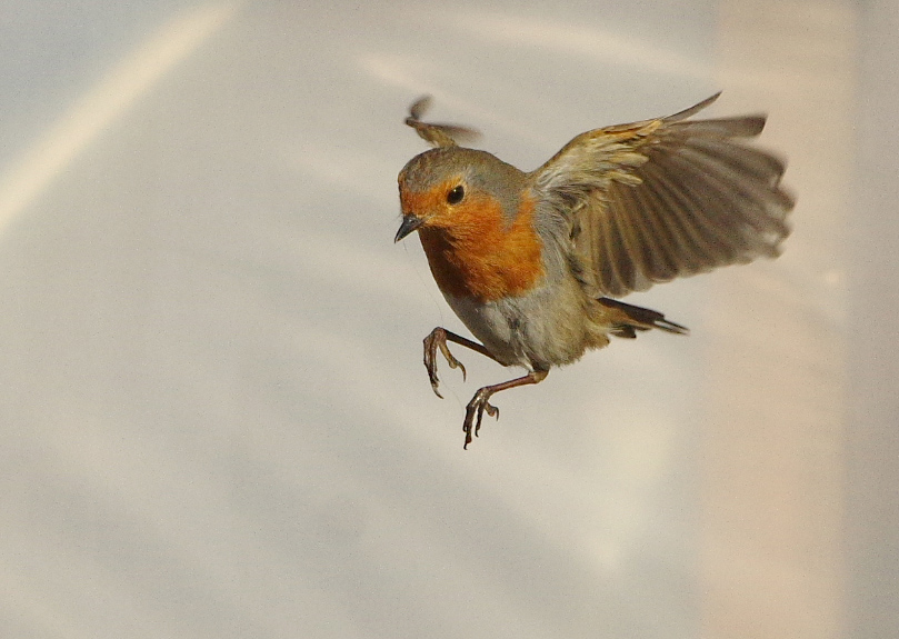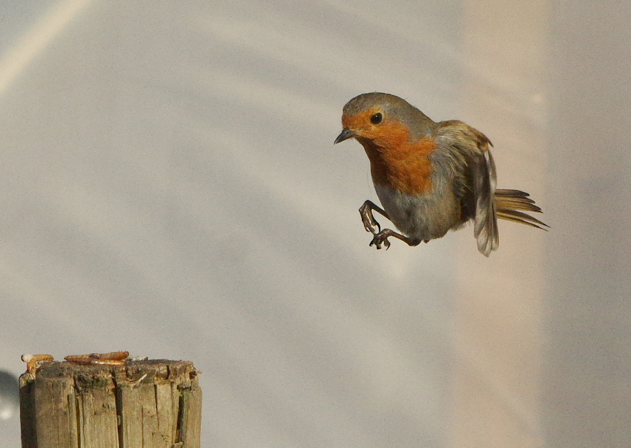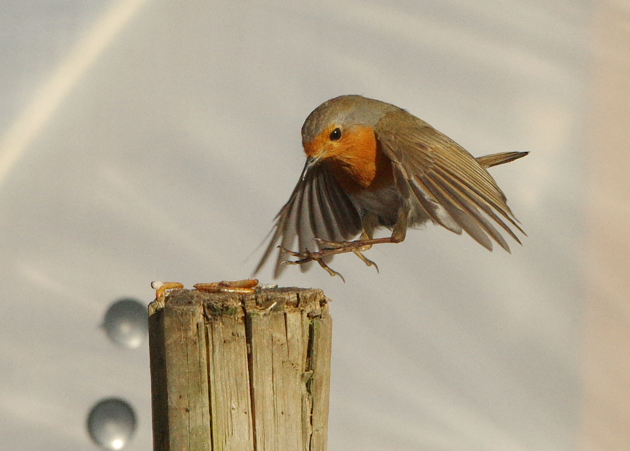 The Robins are constantly on the search for food for their nestlings now. As soon as either myself or Jenny go down in to that part of the garden they come to see if we are going to disturb some prey or better still, offer them a few mealworms. I have resisted the temptation to offer too many of those because I don't think it is too good for them to be too reliant on mealworms. However, as soon as one is offered the female mostly, will come and take it, hovering a couple of inches above my hand at times but as yet, she hasn't quite had the nerve to actually take one from my outstretched palm. The female has been coming right in to the polytunnel and searching around with no fear whatsoever and at other times she has will perched inches from me and remained there for minutes at a time.