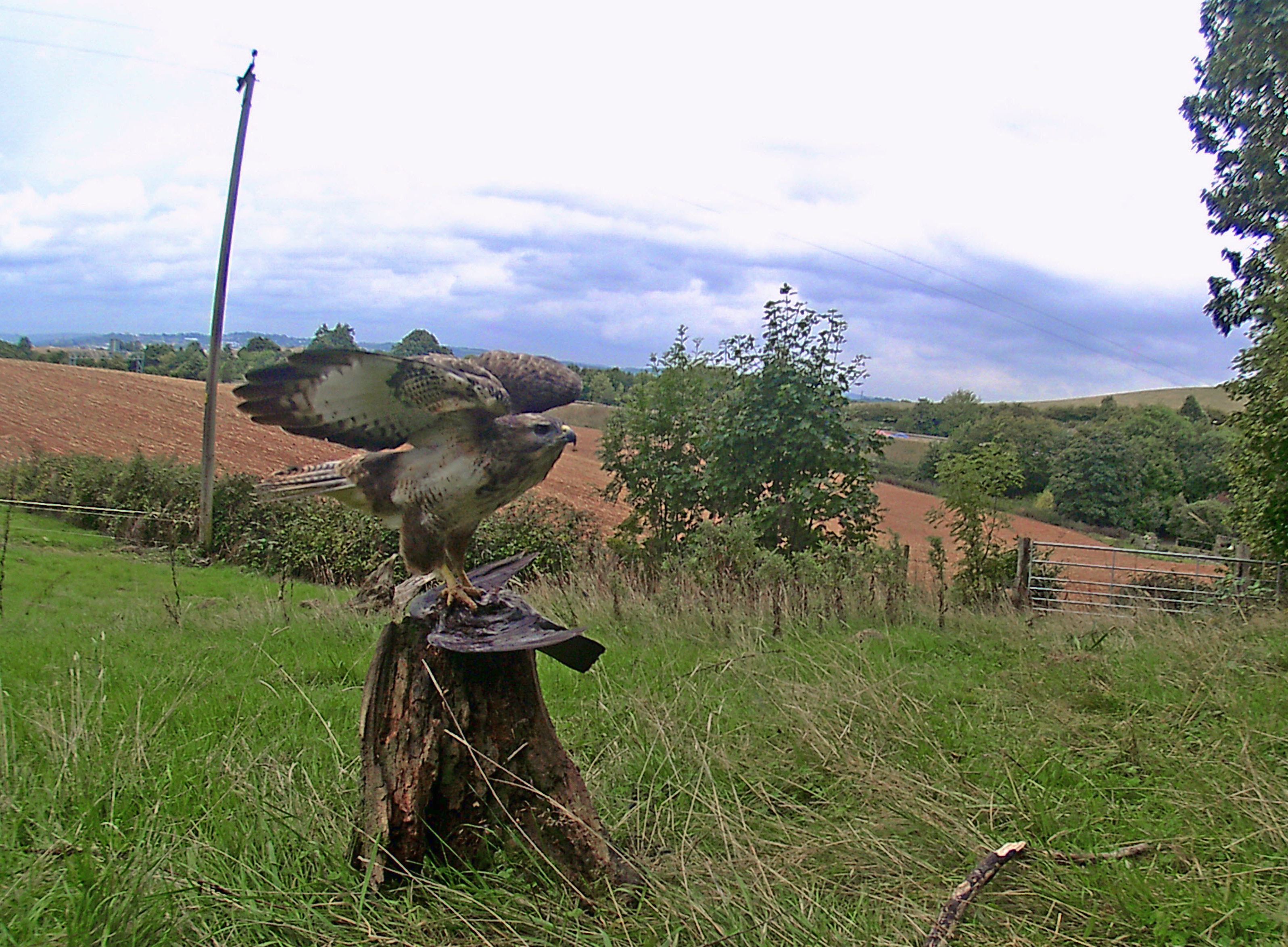 I spent the afternoon listening to and being depressed by the football club that i support and then returned to check the trail camera to see if there had been any "action" this afternoon. It was great to see that a Woodpigeon carcass – the remains of the peregrine kill from the other day – had been removed from right in front of the camera……how exciting was that. There was bound to be some photos and footage. The saved files showed that a Buzzard had come for a look at just before 4 and then returned 40 minutes later to take the carcass. I think I got the very best out of the trail camera and the image below is what it is, an image taken on an £80 camera. But it's never the less interesting for that.