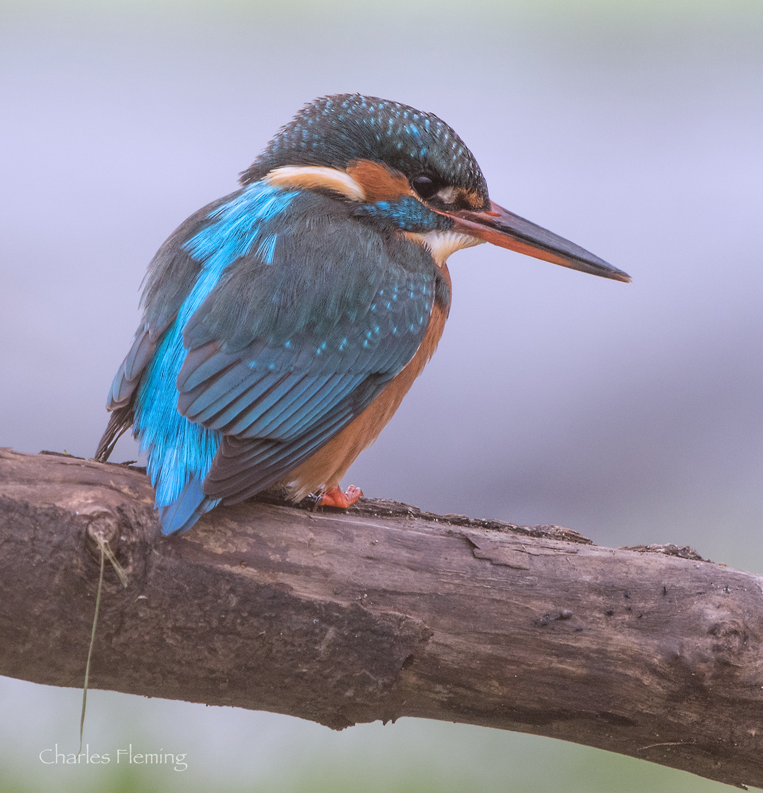 As my wait for the Kingfisher continued – with my feet starting to lose feeling with my wellies stuck in the cold water – I saw a Kingfisher twice and she still didn't perch where I wanted it to, then I heard one calling nearby, it was getting quite frustrating. I decided to give myself until 2.30 which would have been a 2 hour 30 minute session. Then, suddenly there it was. The light was about the worse it had been in the entire time I had been there, but I was thrilled verging on the ecstatic when my patience and planning had yet again paid off. She didn't stay long but long enough for me to take some photos and see that it was a bird that I hadn't seen before. It was a great result and I was very pleased with the end result of a cold an uncomfortable session.