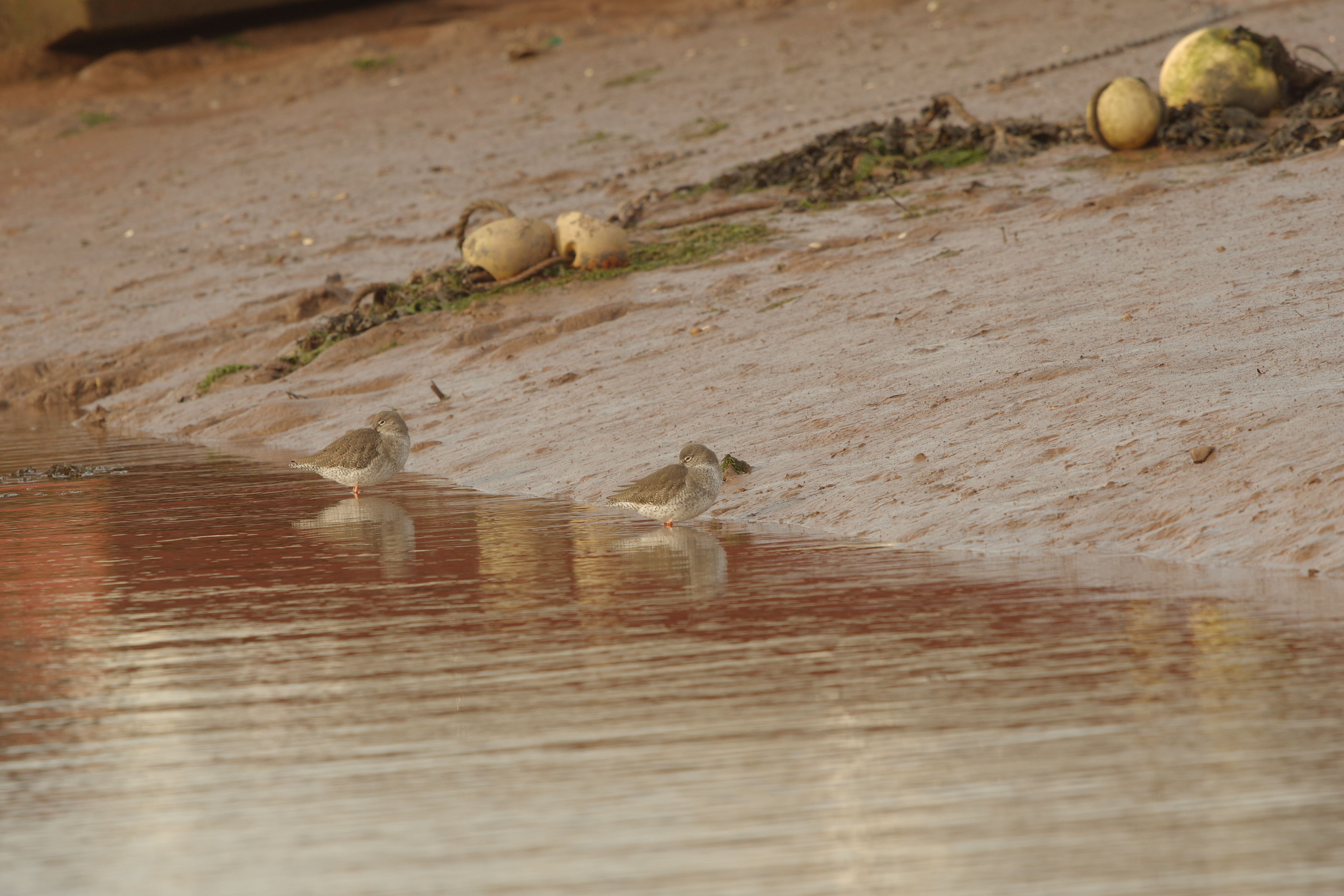 The Redshank that we get over-wintering here on the River Exe are interesting. Ringing projects have shown that they are here from various breeding sites in Western Europe including the Netherlands. Ringing projects have been able to prove that some Redshank continue much further south in to Portugal and Spain and in other cases even Africa.There is apparently no pattern to this migratory behaviour, some birds just choosing to continue much further south. They are very busy birds, seemingly feeding constantly on mostly ragworms it would seem. Muddy harbours and estuaries are perfect for this which explains why they are here of course.