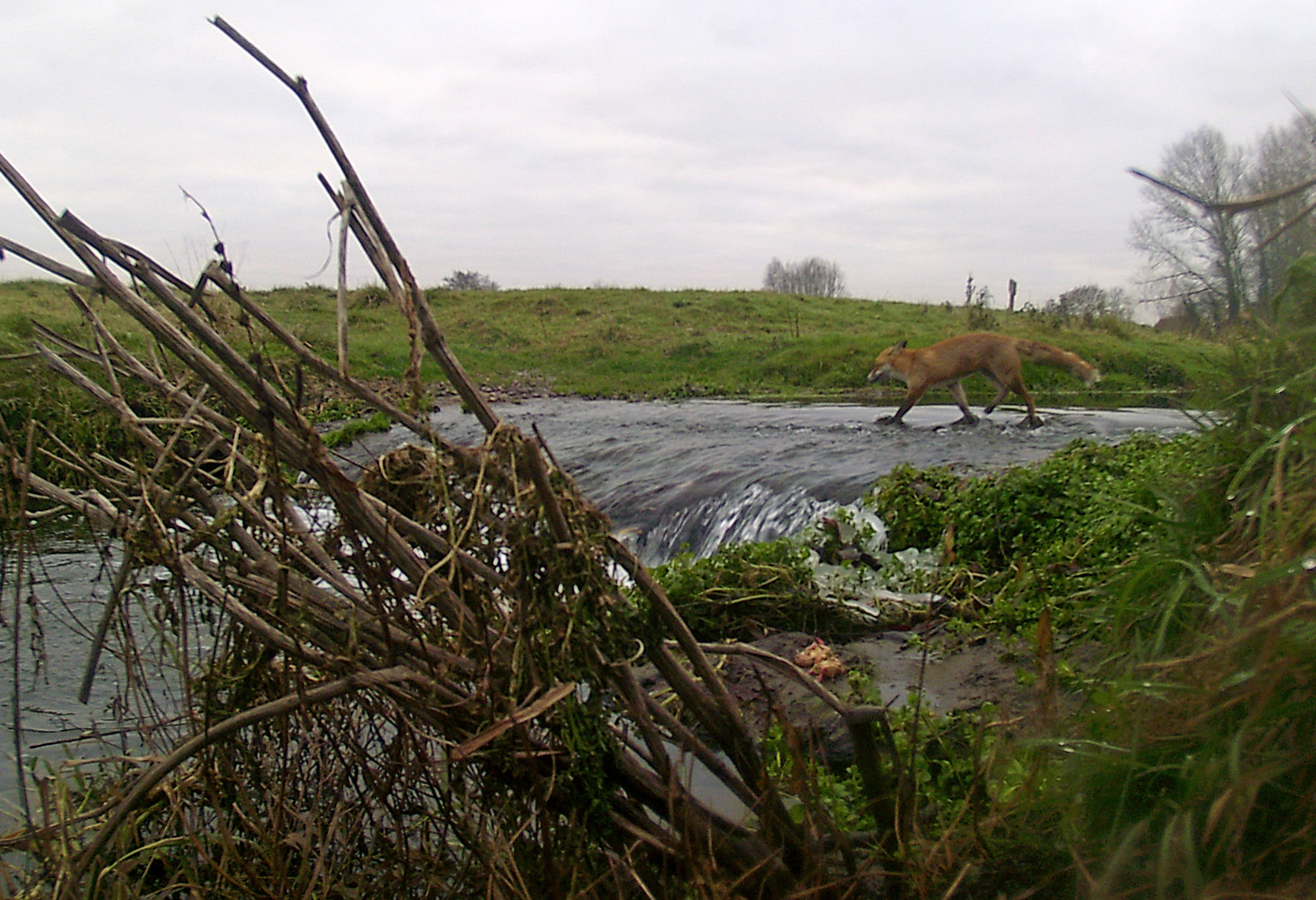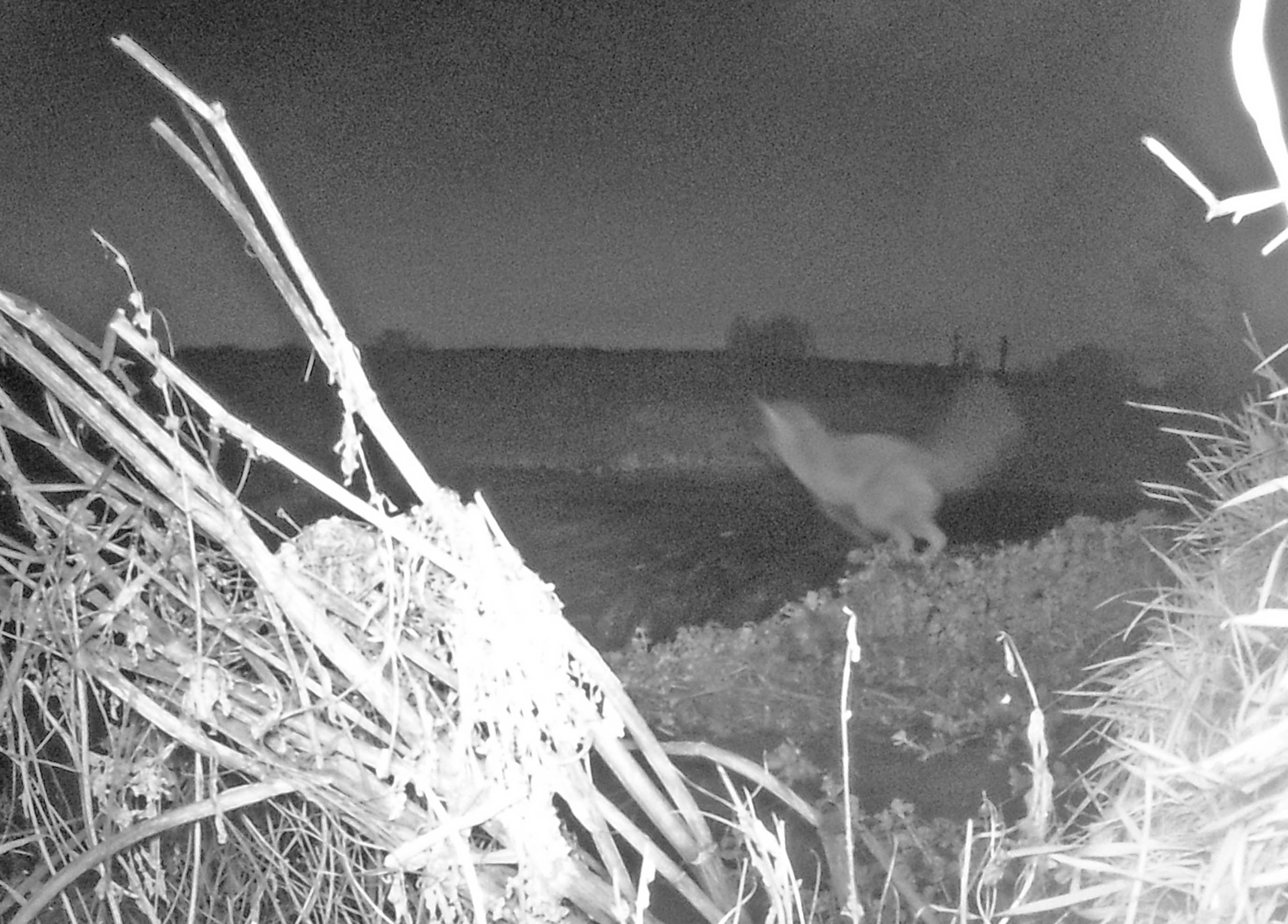 The quality of images taken with a Trail camera is not too good but in lot's of ways they are more interesting.  I have been leaving a camera out somewhere where I have found Otter spraint in the hope of getting some footage of them. When I checked the camera files today after it had been left out for  48 hours, it was really interesting.  No Otters but several times the resident fox passed in front, making it's way in both directions both at night and during the day.  Great to see it. I am not one of those people that doesn't like Foxes, I love them in fact. I hope this particular animal is safe here, I don't think it will be shot at, trapped or poisoned.  I have no idea what it is finding to eat but there are rabbits around so it may get lucky now and then.  They will eat berries and fruit, beetles, earthworms, rodents and of course birds, not to mention any carcass that they may be lucky to find.  Filming it on the camera though was brilliant because it obviously means that any otter passing in front of the camera would be captured as well.  Also filmed was the resident Grey Heron and surprisingly a Cormorant.  So in this small area over the last 3 weeks or so I have seen and photographed, Fox, Kingfisher – both male and female – Green Sandpiper, Grey Heron, Little Egret, Cormorant, Robin, Song Thrush, Meadow Pipit, Teal, Moorhen and of course a Stonechat pair.  I filmed something during the night and  I have absolutely no idea what it is…… can anyone out there identify it on the grainy and blurry infra – red image.  It looks like a cross between a bird and a squirrel!