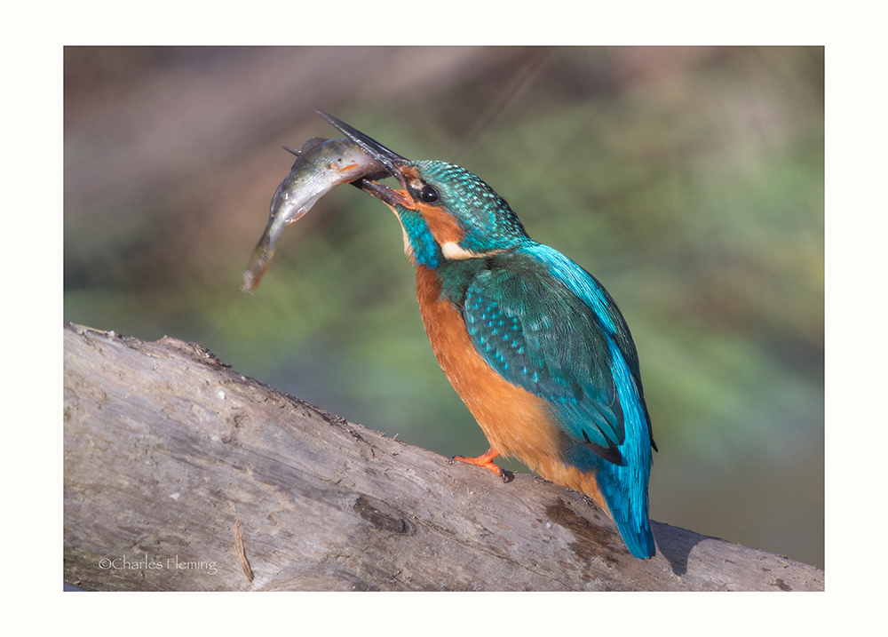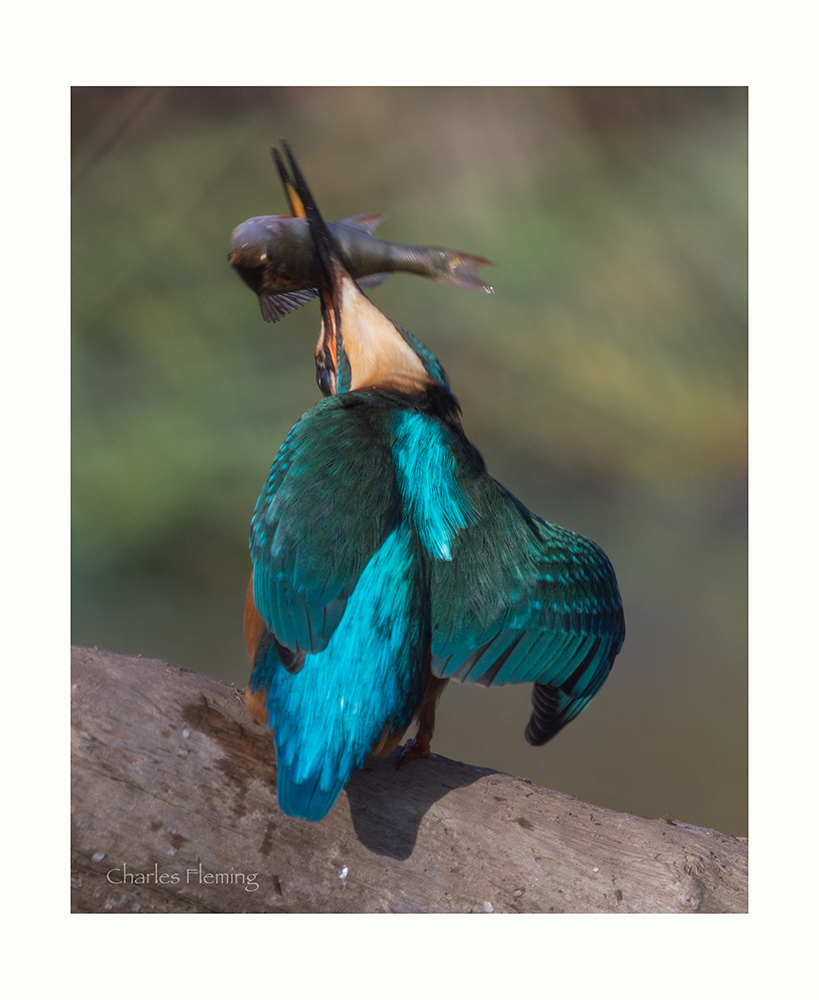 When a Kingfisher deals with prey it will repeatedly beat it against a branch, initially to kill it but also to soften it. It's imperative that with a perch or stickleback for that matter, the sharp needle like fins are folded down before the bird swallows it, always head first. I think it is remarkable that a Kingfisher can eat prey like this because the fins of a perch have evolved to protect them from predation. They really are needle sharp as any angler will tell you. The beating of the prey is quite a vigorous affair as you can see in the picture below.