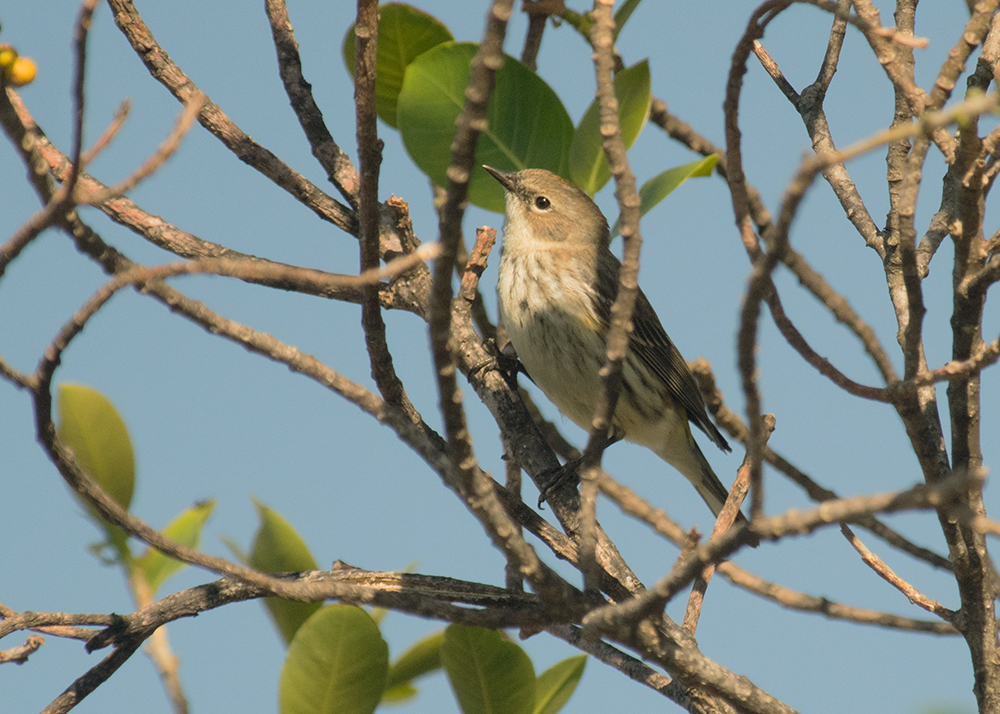 I am not 100% certain of this species but suspect very strongly that it is a Yellow-rumped warbler (Setophaga coronata), one of Florida's over-wintering warbler species. I would have expected – and hoped for an adult, and far more attractively marked male however – but the head pattern and the existence of a yellow rump does indicate very strongly, this as the ID. If you can correct me, then please do so by email or through the blogs comments, thanks. I have photographed this species before in January 2016. I watched a female Northern parula (Setophaga americana) feeding on the berries of a fruiting tree. The females of this species are very attractive also, if not as exuberant as the male. This photograph is quite cropped as the bird was feeding right at the top of the tree.