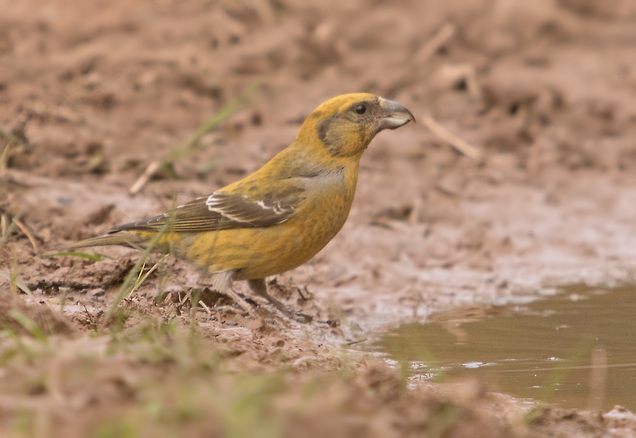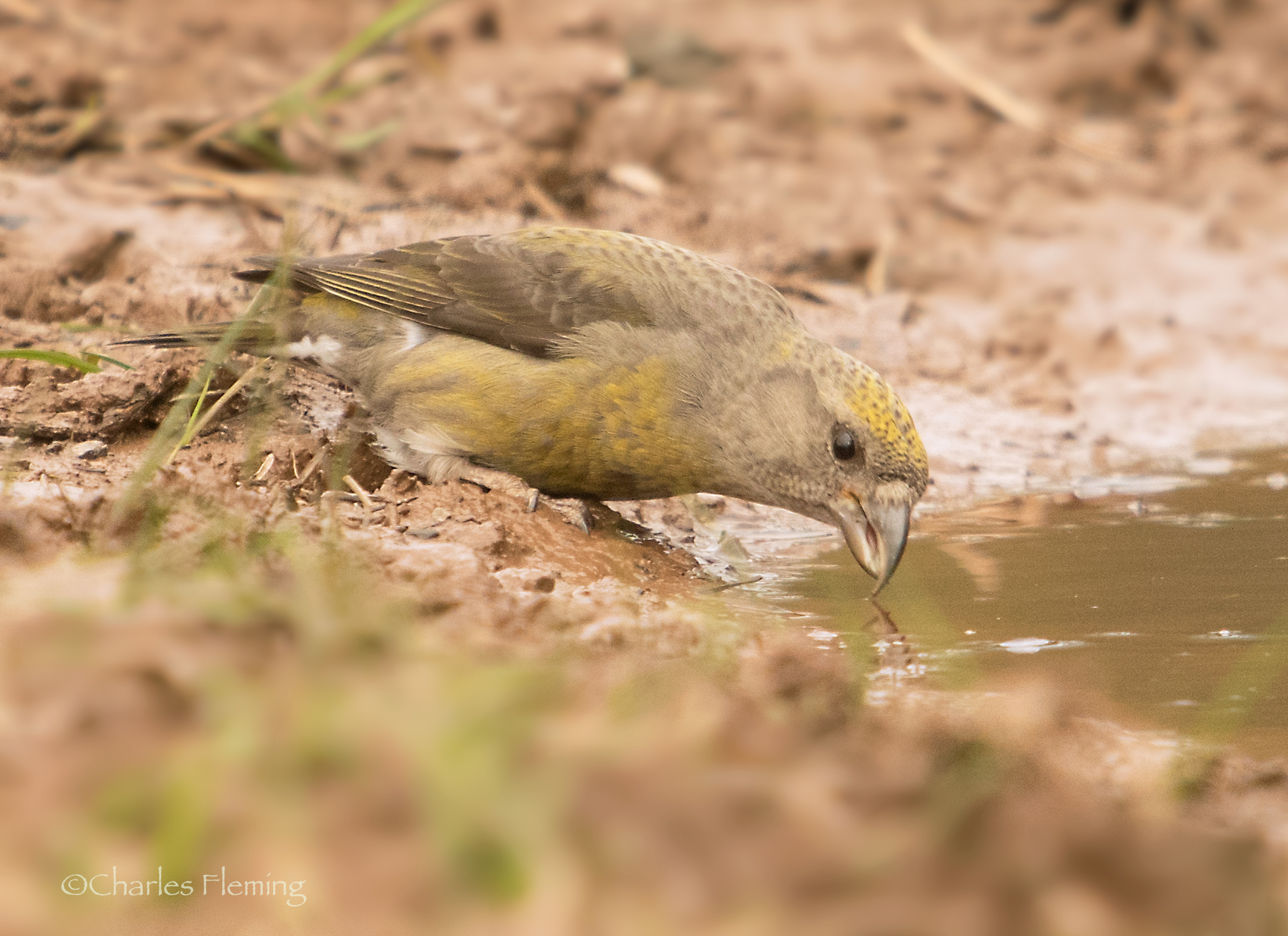 Its been very unseasonably dry this last few weeks and standing water is a bit scarce. Crossbills are mostly, if not exclusively, seed eaters and need to drink regularly. Therefore standing water, even a muddy puddle will bring them down to drink. Very useful to the observer and photographer.