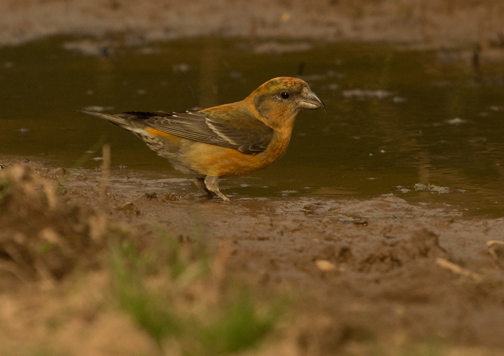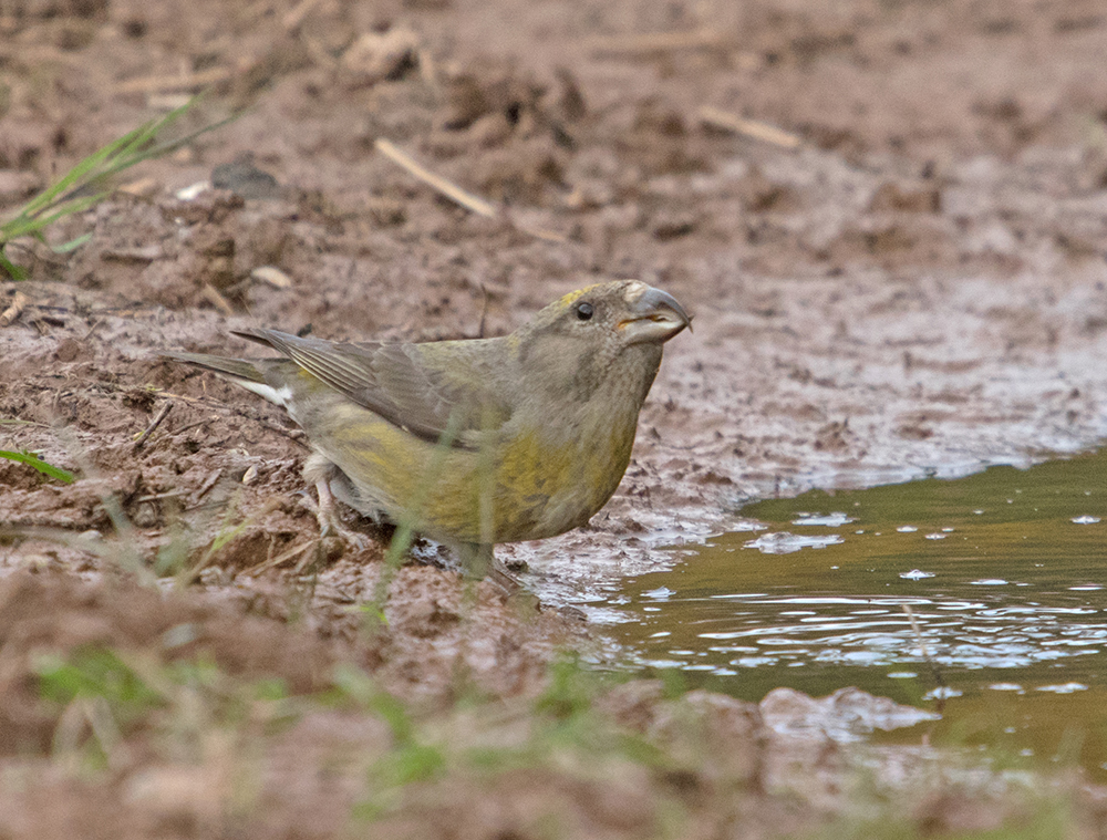 I returned yesterday to try to improve on the photographs of the drinking Crossbills. I heard a nice comment recently saying that it's one thing to take lots of photographs but it's not as easy to finish up with good pictures, a very good comment if you think about it. You can decide if you think this is good photograph or in fact a good picture? For what it's worth, I love it. It is a male and yesterday I photographed not only males, but females and juveniles. This was all very, very interesting. Crossbills seemingly come in a variety of colours which makes them doubly interesting. Males, females and juveniles are all different and come in different shades of greens, yellows and reds. They are like designer finches! Another interesting fact is that their "crossed" beaks don't all cross the same way. The beak on the one above crosses left over right, in other words the top mandible crosses towards the right eye. How very interesting is this, is there a pattern to the direction of this crossing, do birds carry genes to dictate this crossing. This opens up some real scientific unknowns – or is it unknown – my question is this. Do all birds in the same family group have beaks that cross in the same way or is it purely random? Are birds genetically programed as "right" or "left" crossers. I have studied every bird that I have photographed over the last 48 hours, at least 12 different individuals of both sexes and all ages and on these, all cross left to right but if you look at the picture of a male taken previously then you can see that the beak crosses in the other direction. Fascinating!! I would love to know the answer to this question.