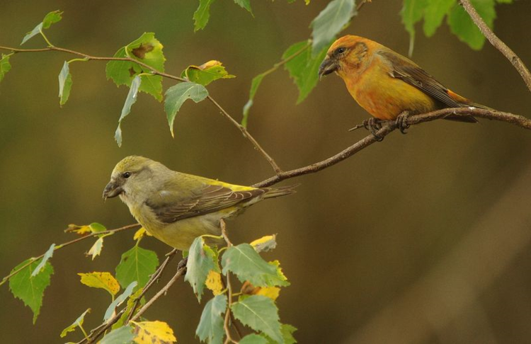 Here's a pair of Crossbills photographed in 2015, both birds are lefties!