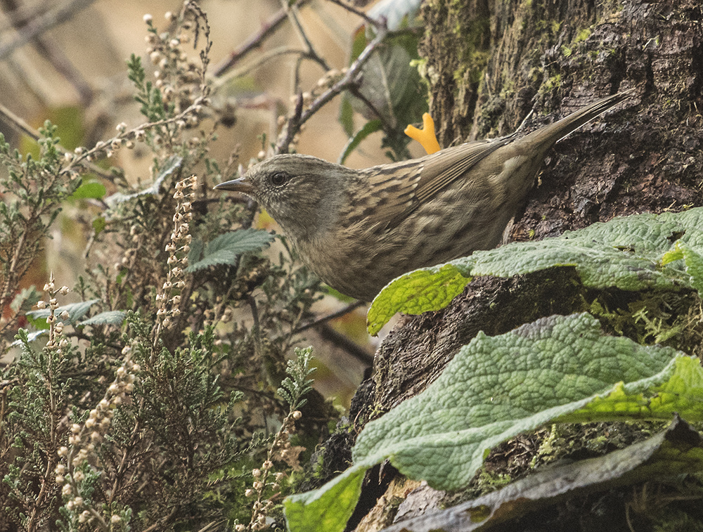 I am back "birding" in the UK again now. I have this plan to try and entice a Green Woodpecker to come and take apple that I have put out on a log in front of a hide on Haldon Hill. I thought it was going to happen this morning because there was one calling very nearby. I wouldn't have thought it was that easy to find food at this time of year, something is taking the apple and I just hope it is a Green woodpecker…..fingers crossed! While I waited this morning, a Dunnock came down and fed on tiny pieces of peanut. Dunnocks are an unobtrusive little bird with an interesting Latin name…. "Prunella modularis"