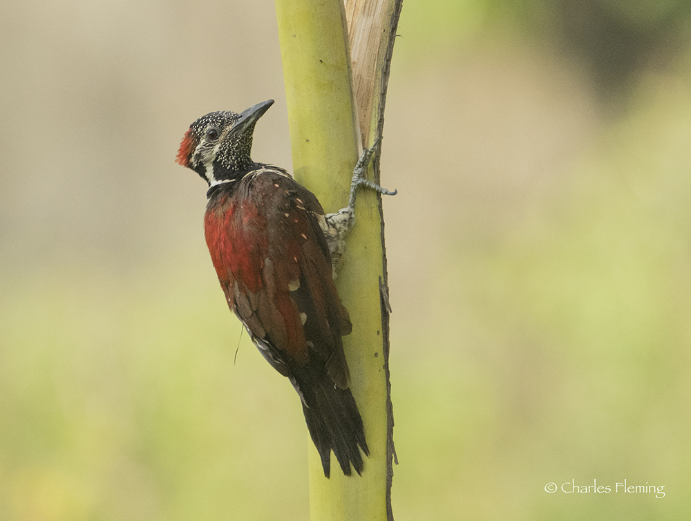 I have been sorting through my pictures from my December trip to Sri Lanka. One of the highlights was the close views that I had of Red backed Woodpecker. This bird is interesting because it was recently declared a species in it's own right. Formerly it had been thought to be a sub-species of the Flame-backed Woodpecker. It is a bird only found in Sri-Lanka – therefore, and is an endemic species. These birds seem very fond of coconuts and two were in the garden regularly during my stay recently and I had great photo opportunities. I have discovered that it is possible to sperate the sexes and I dont think this has been illustrated by many people before, if at all. If you look at the photos you can see that just above the beak on the forehead, one bird has white spots on a black background and the other bird has red spots on the same black background. The white spotted bird is the female.