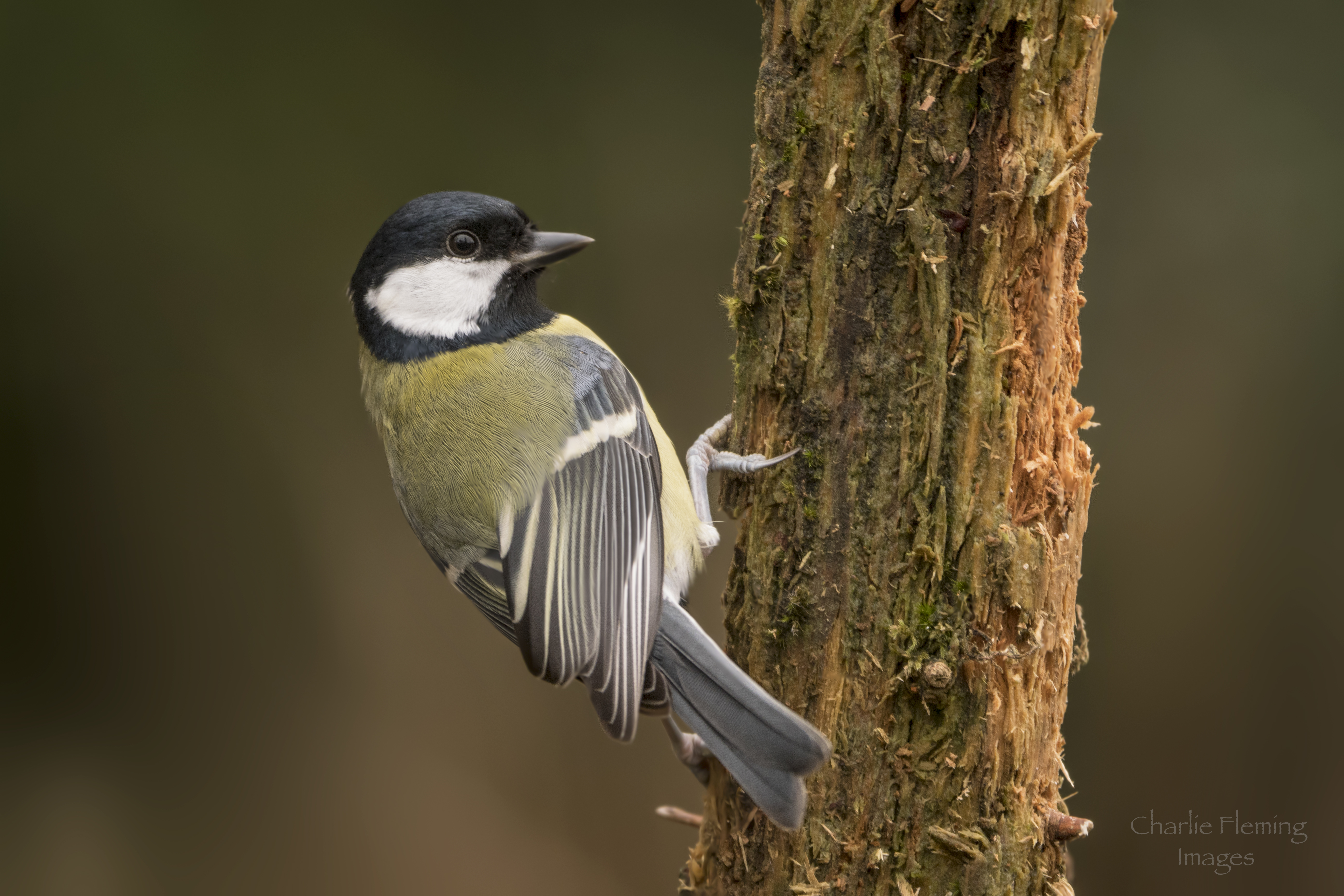 Here is another one of our common birds – a Great Tit – for my friends from Ecuador and the USA to see and enjoy. This is a bird that comes into our gardens and to the feeders that many people put out. This is worth 200 million pounds to the UK economy incidentally. Great Tits will also use nest boxes which many people put out. Compared to the Coal Tit, the Great Tit is a much bigger bird, literally twice as big by weight at 16grams. In Haldon Forest, 3 miles from my home, Coal Tits are numerous and these last few days I have been photographing them as they come constantly to a feeding station that I have set up. It is a real challenge to get a good image because they are never still and with the light not being good at this time of year it is difficult to get a sharp image because of movement. I have also been attempting to separate the male Coal Tits from the females. I have read that males have a larger dark bib which is more clearly defined but this is, as yet, not scientifically certain. It is good though to see that this species is doing so well. Yesterday I also had a Nuthatch and female Great-spotted Woodpecker and also a beautiful Chaffinch and I am hoping for Brambling but not yet.